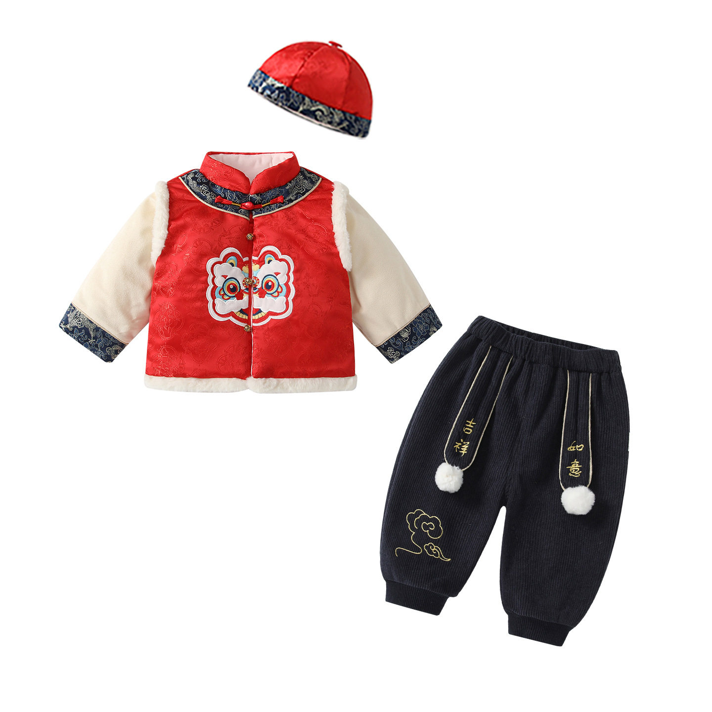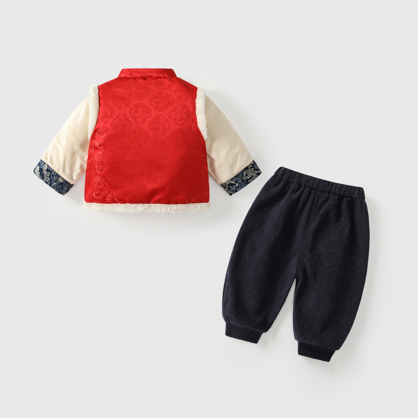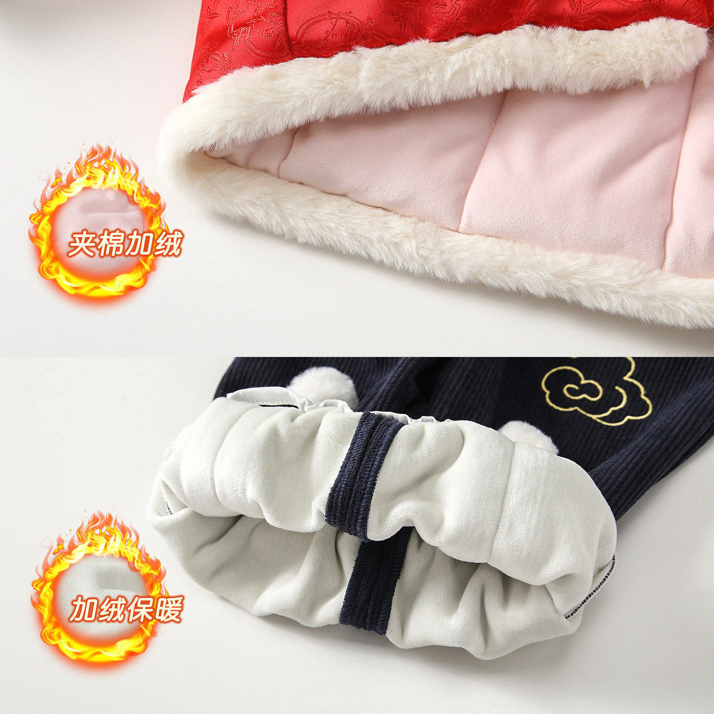 冬加厚 周岁礼服唐装 男宝宝新年过年拜年衣服冬装 棉服男童棉衣套装