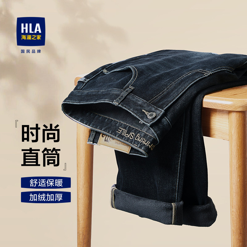 男士 26新款 男裤 HLA 微弹裤 加绒牛仔裤 加厚保暖长裤 子 海澜之家冬季