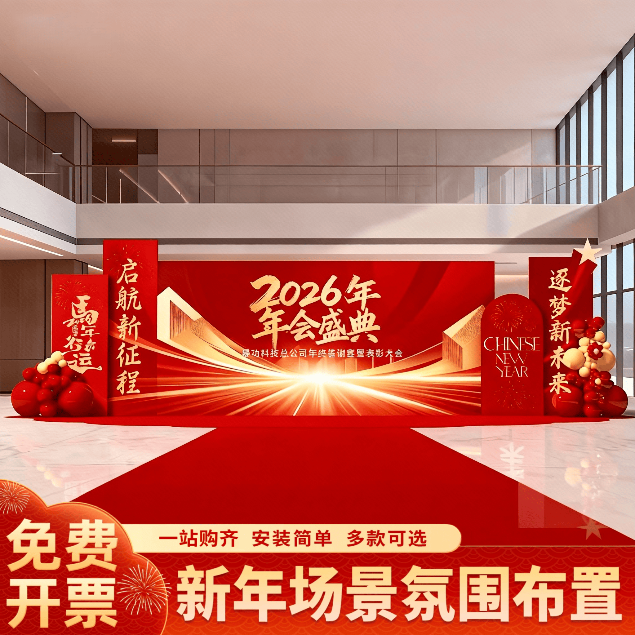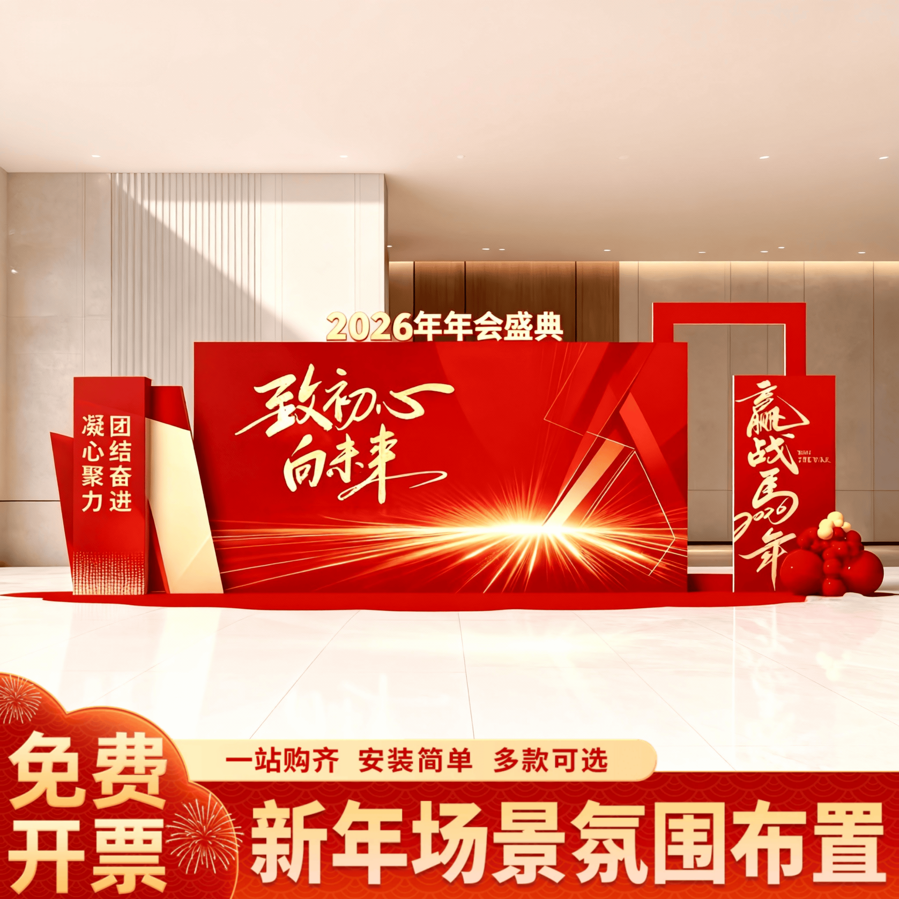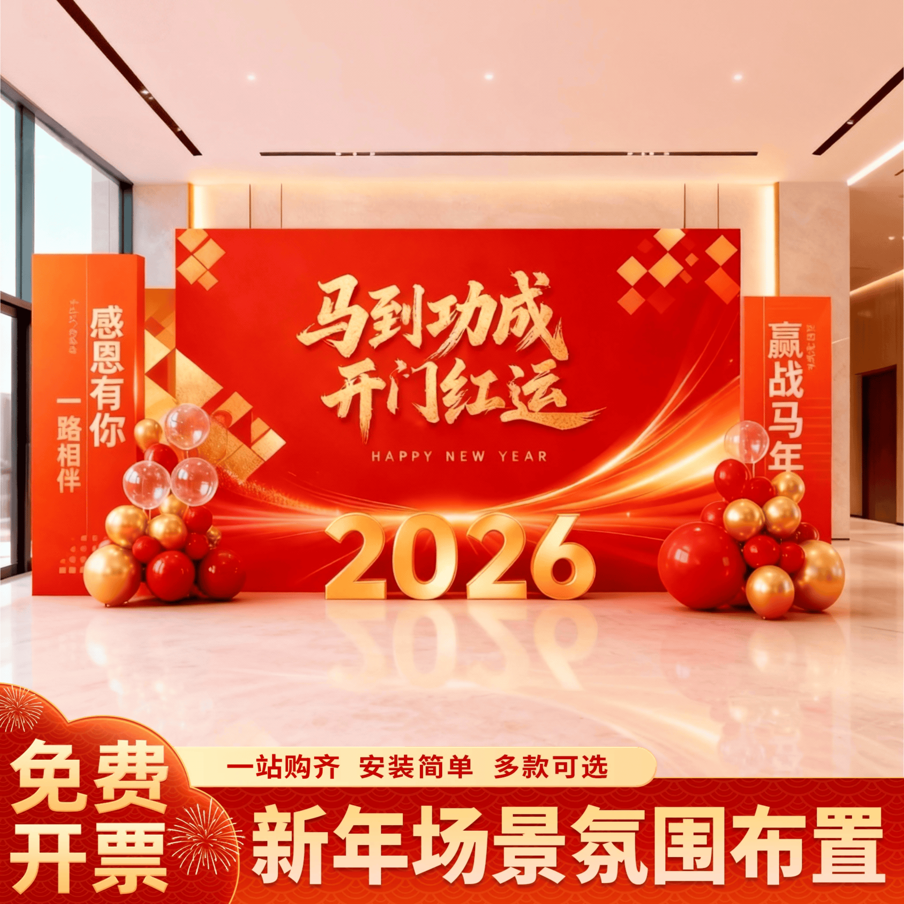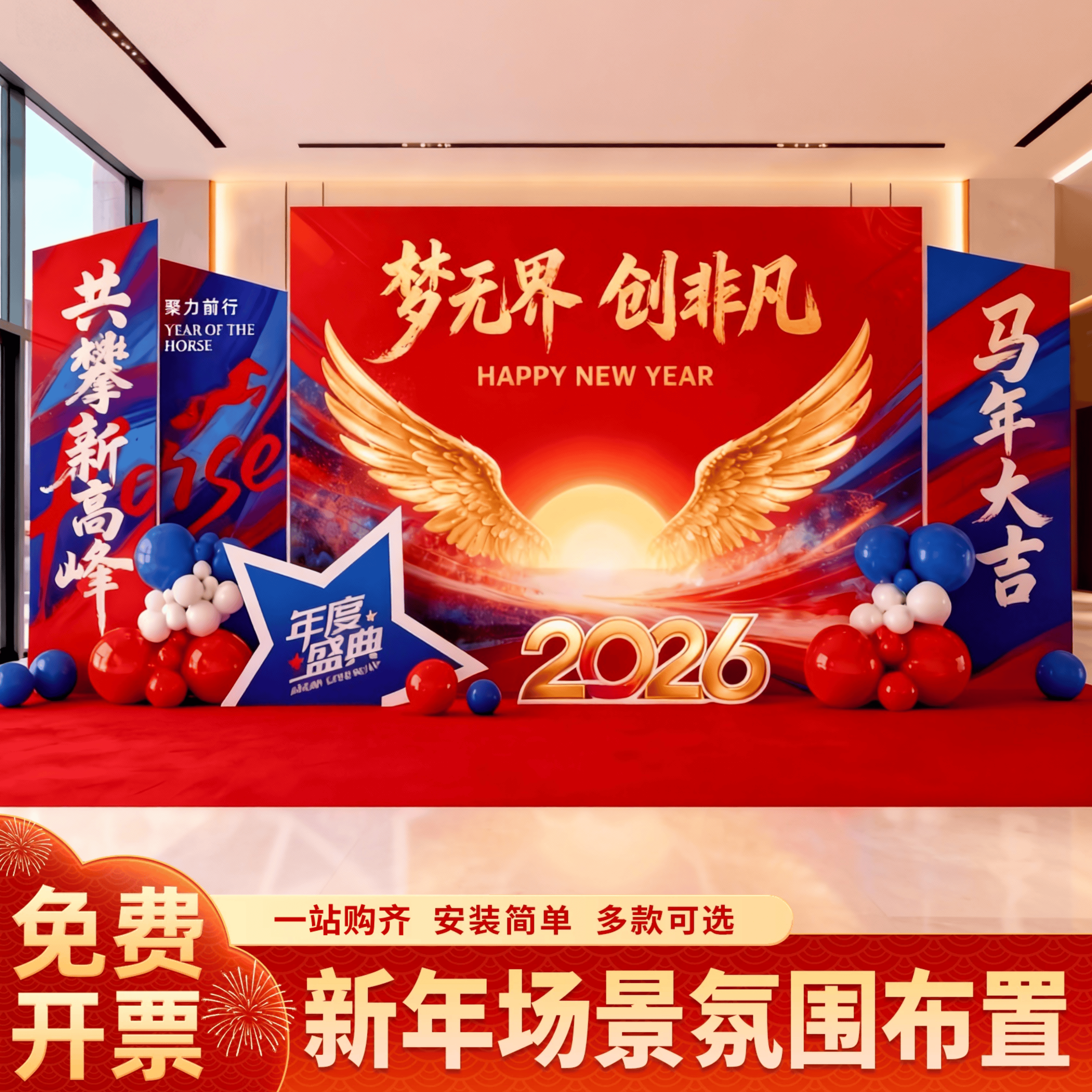 新年会氛围装 饰品场景布置高级感2026公司幼儿园马年背景墙kt展板
