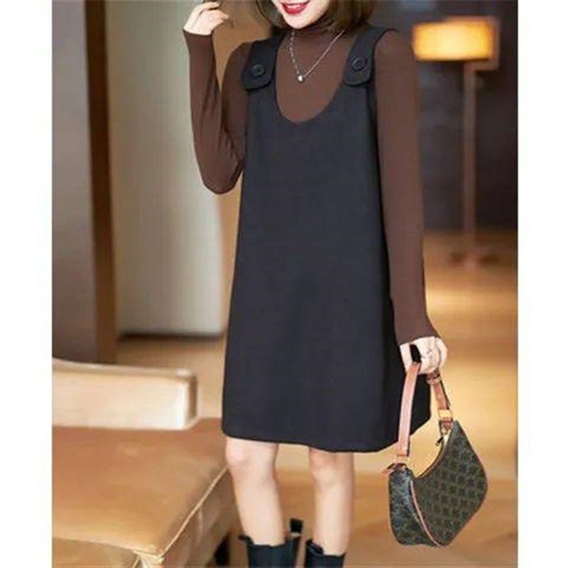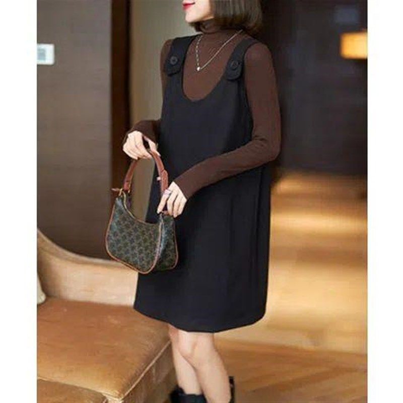 修身 女装 洋气显瘦两件套裙子 2024新款 高档加厚毛呢连衣裙秋冬季