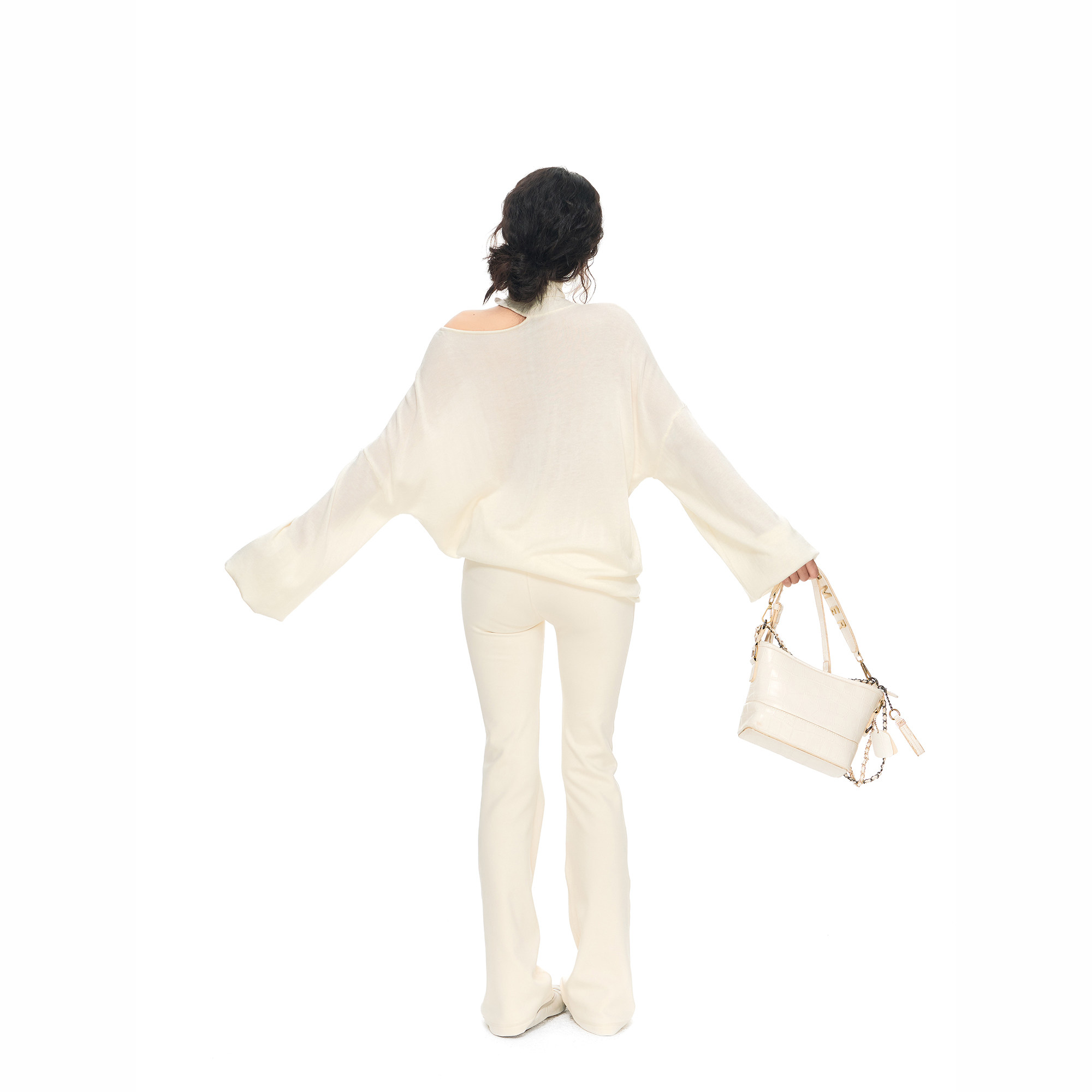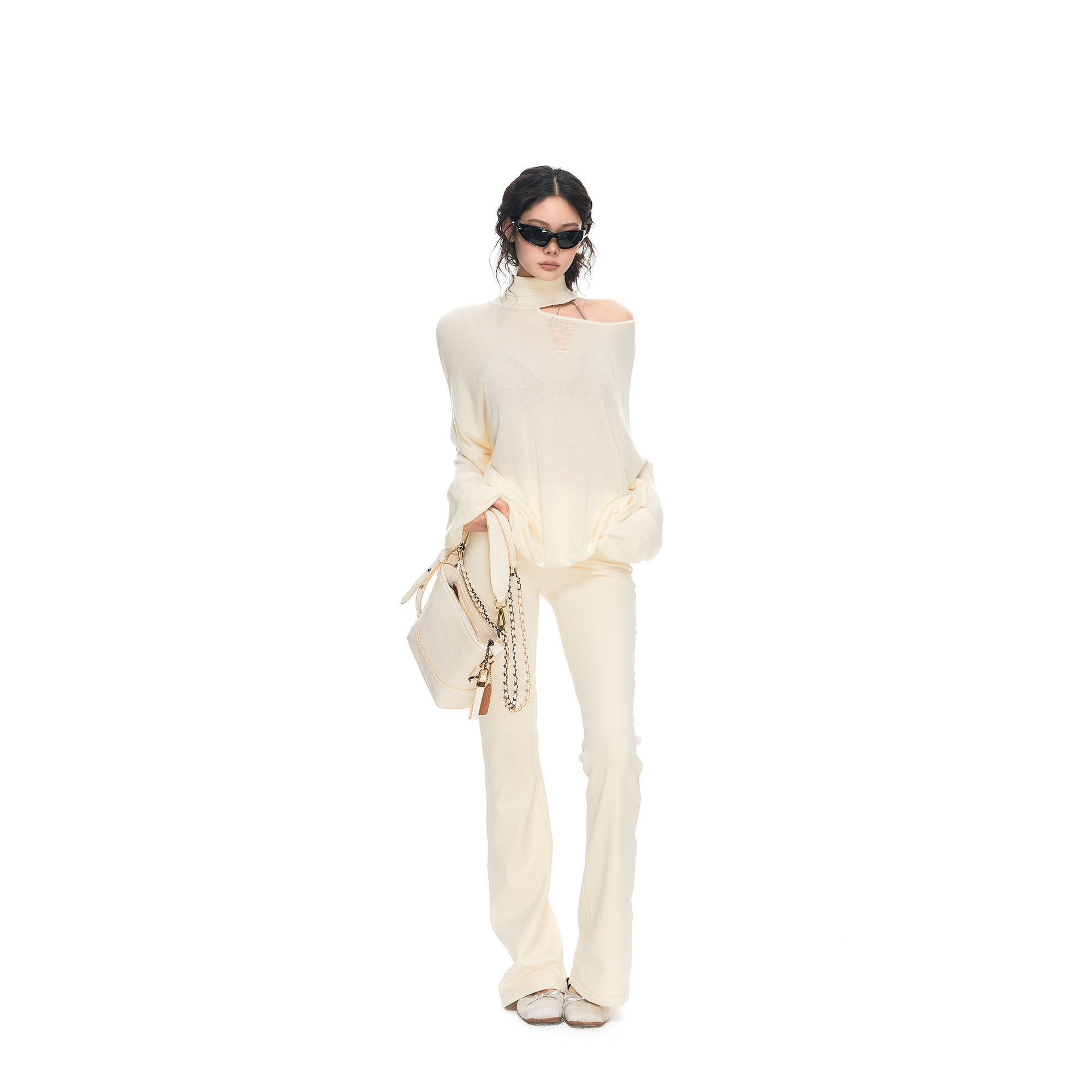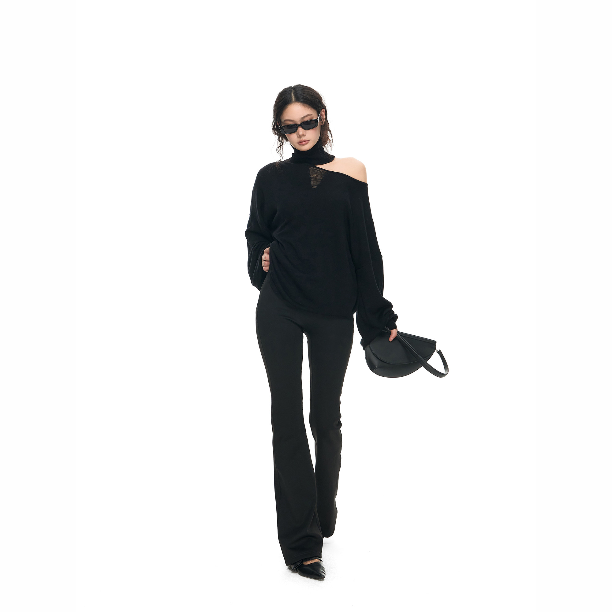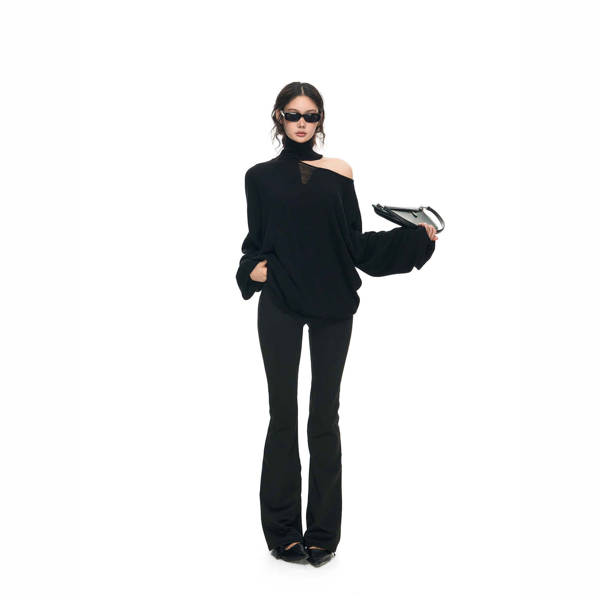 针织上衣女性感微透宽松罩衫 PEMPL 原创设计感高领露肩不规则薄款