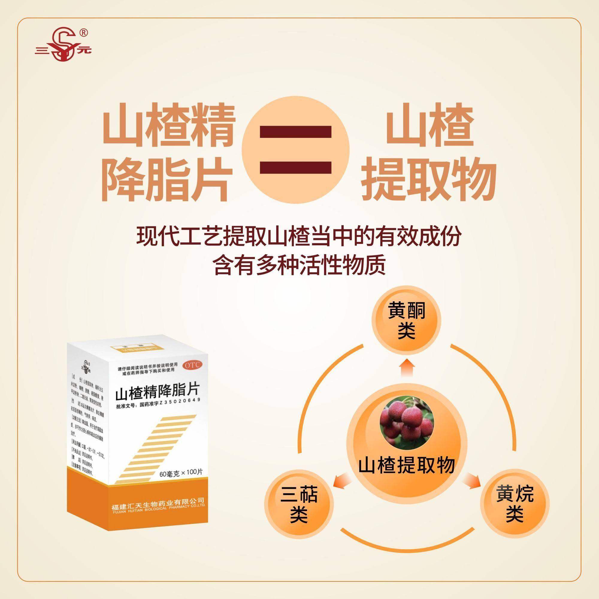 三元 药旗舰店正品 山楂精降脂片60mg OTC中成药降血脂 100片