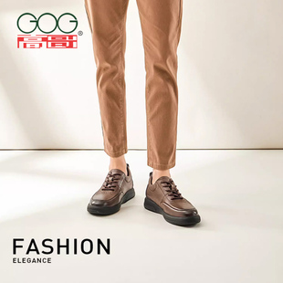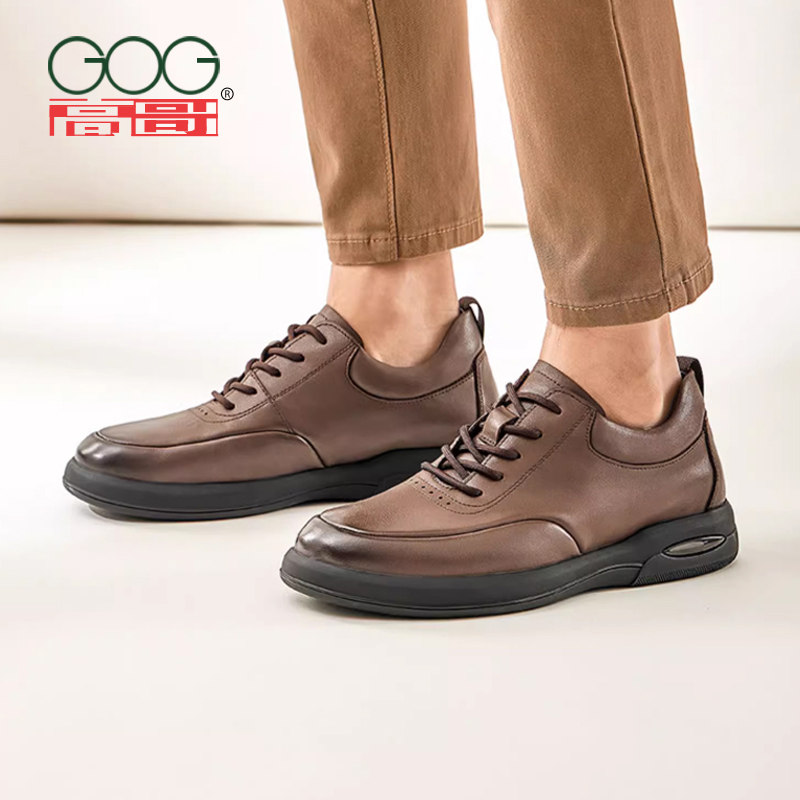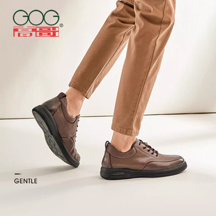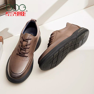 2025秋冬新款 男鞋 商务鞋 增高皮鞋 子 软底休闲系带圆头正装 奥康男鞋