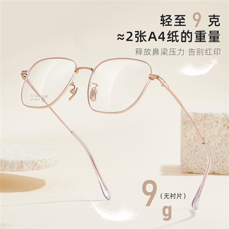 超轻复古级大眼镜架滑纯钛鼻托细框定制成品光学镜防非球面镜片