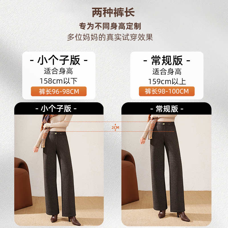 洋气宽松休闲直筒毛呢裤 中老年女装 时尚 子加绒加厚秋冬新款 妈妈裤