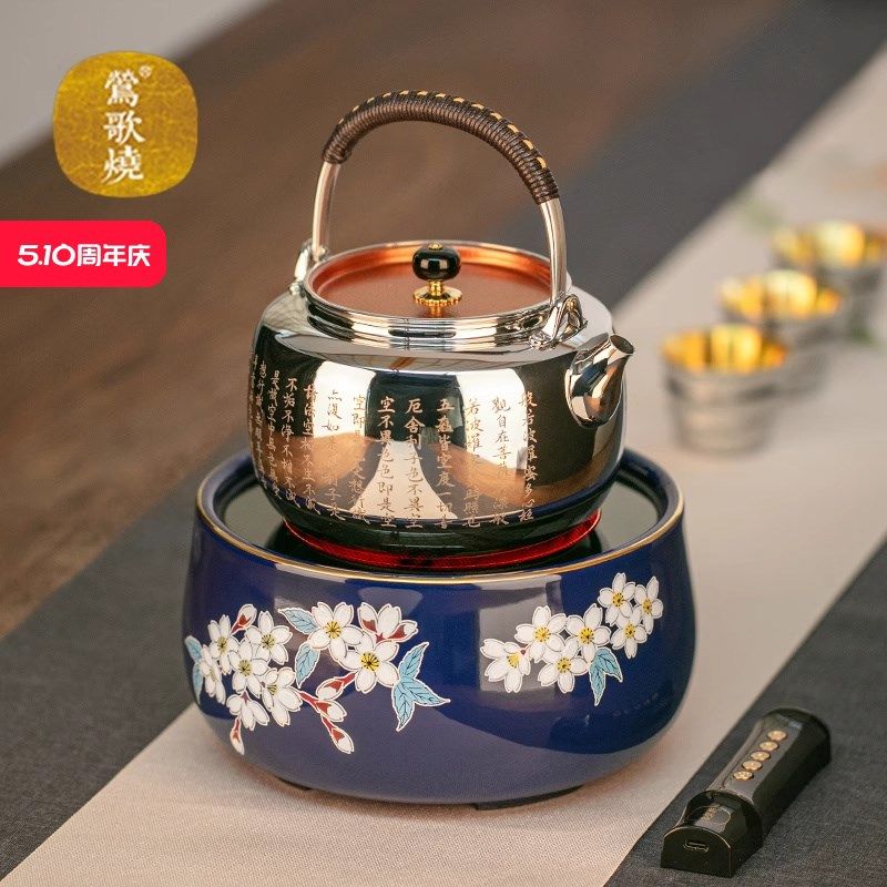 小型迷你烧水煮茶器 电陶炉静音九谷茶炉家用办公台式 莺歌烧 新品