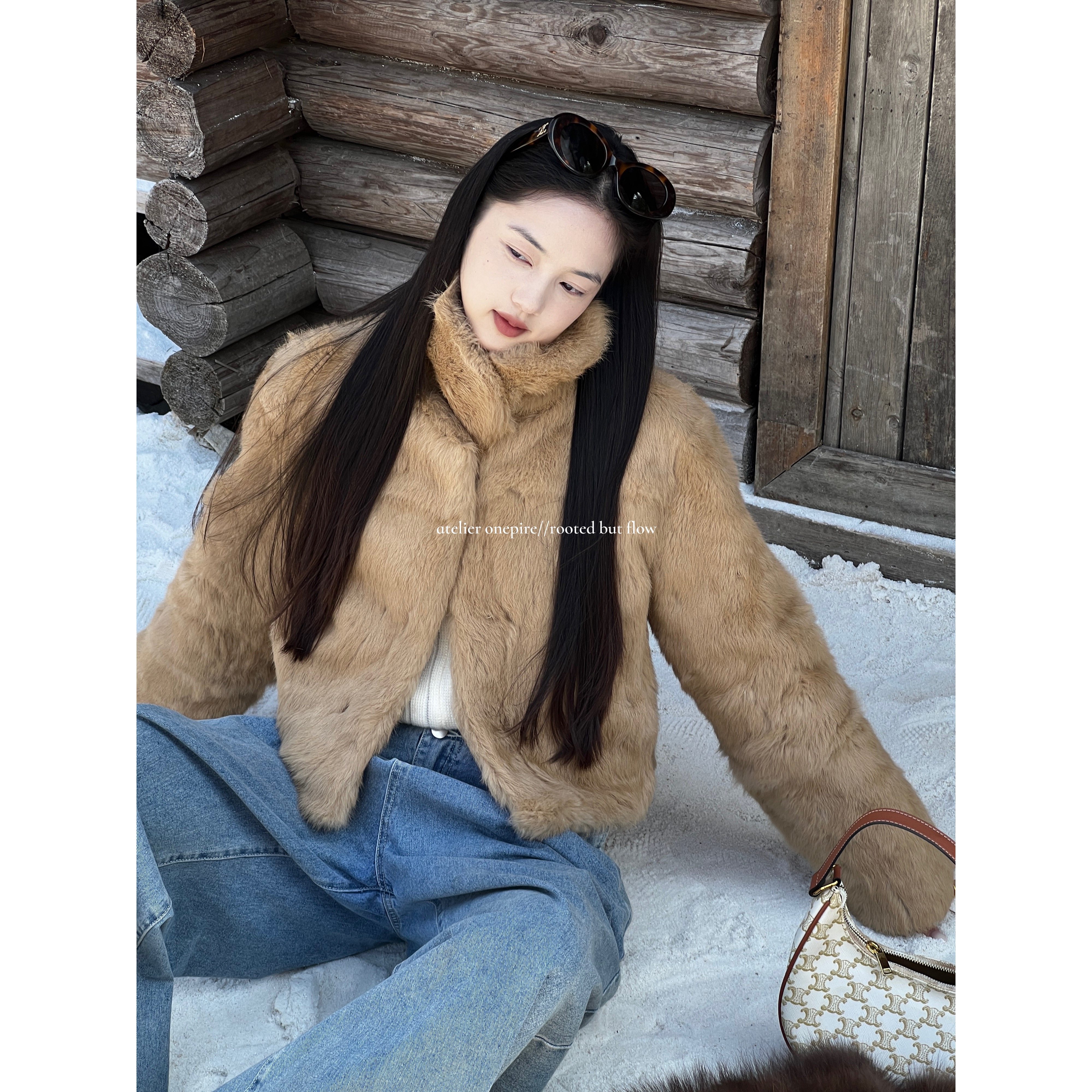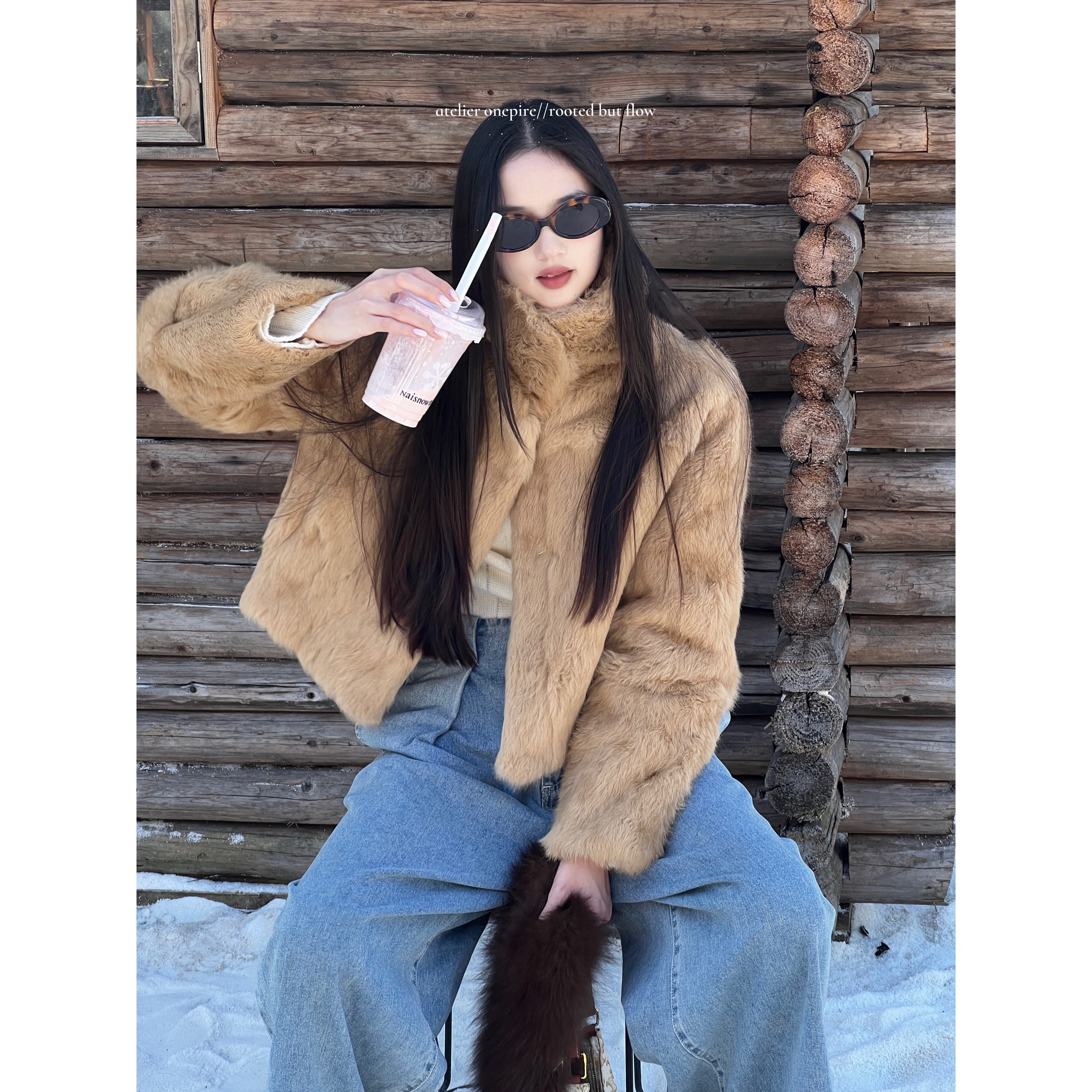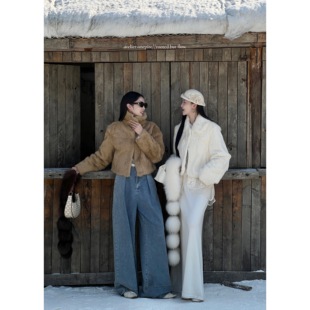 2025冬新款 羊羔毛外套女仿皮草兔毛绒毛茸茸短外套加厚牛角扣棉服