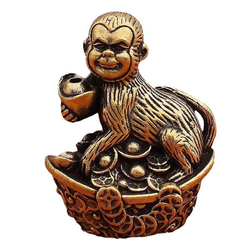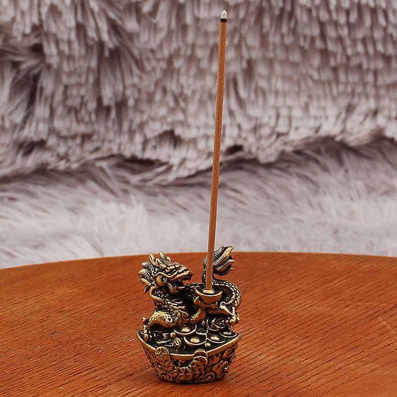 黄铜十二生肖香插底座金元 宝生肖线香香托全铜香熏蚊香线香座摆件