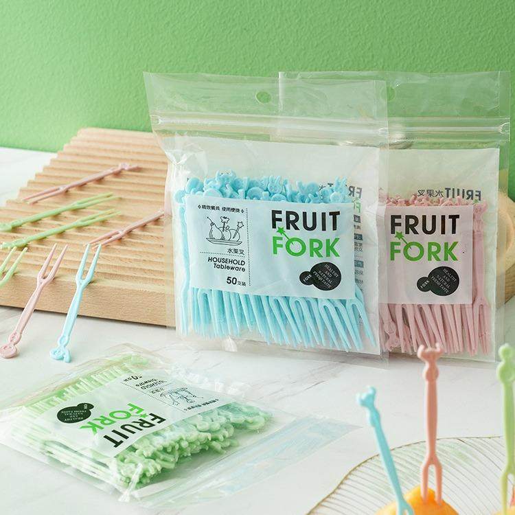 食品级一次性塑料吃小水果叉子家用网红水果签牙签可爱高级感卡通