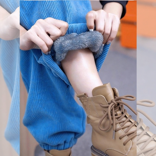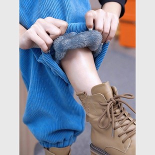 羊羔绒运动裤 加绒加厚裤 女款 2026小个子卫裤 子 冬季 蓝色灯芯绒棉裤