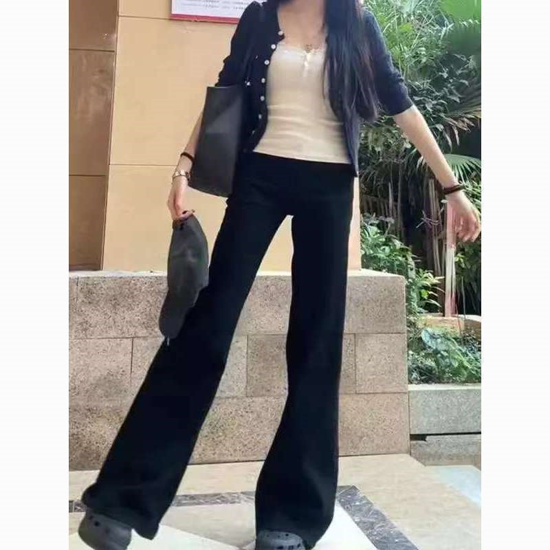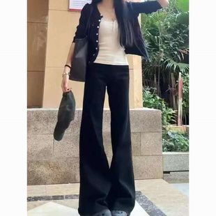 女百搭显瘦纯色拖地裤 2026春季 黑色辣妹高腰微喇牛仔裤 新款 潮 韩版