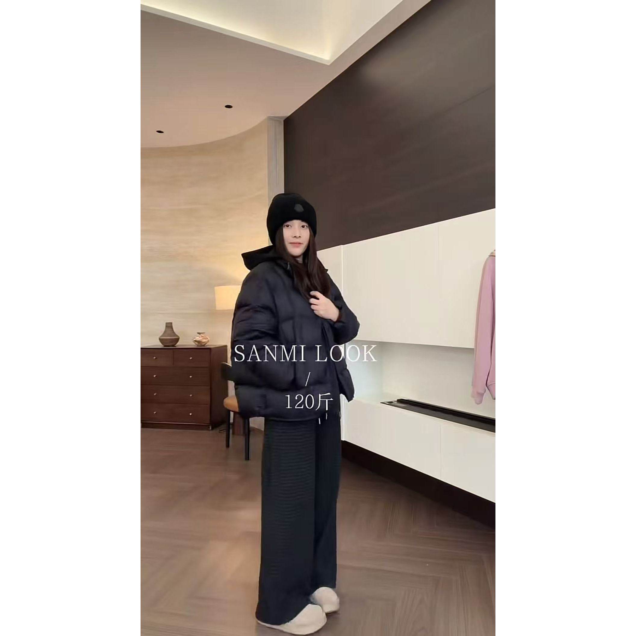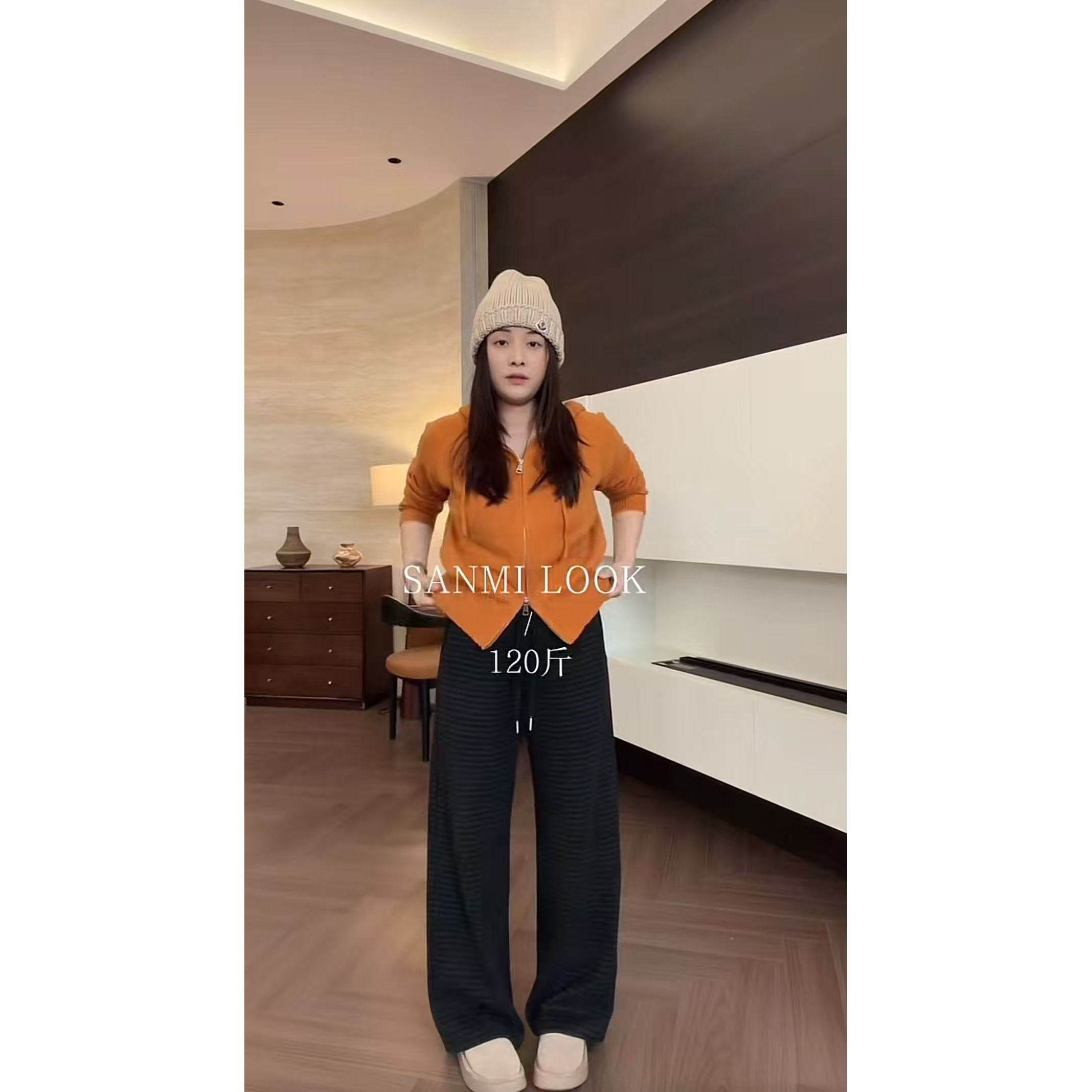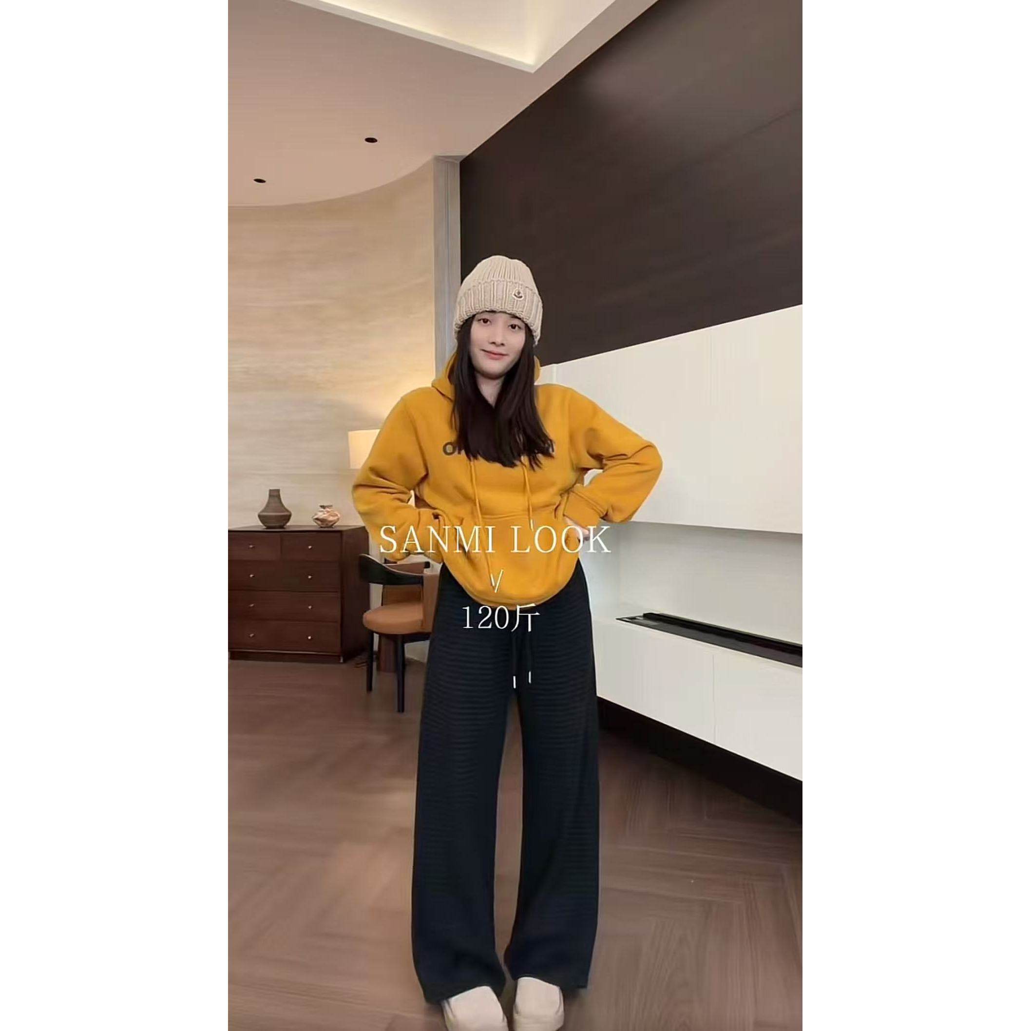 J1332 SANMI 松紧腰头条纹阔腿裤 加绒条纹裤 叁米