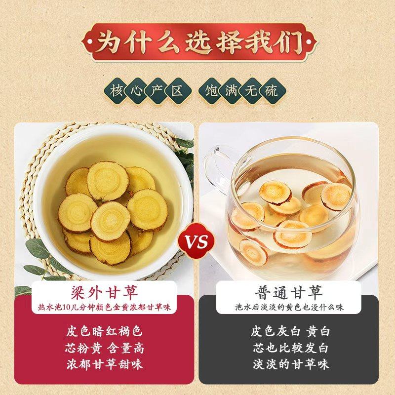 红皮甘草片内蒙古梁外非野生正品 宗特级中药材生泡茶水官方旗舰店