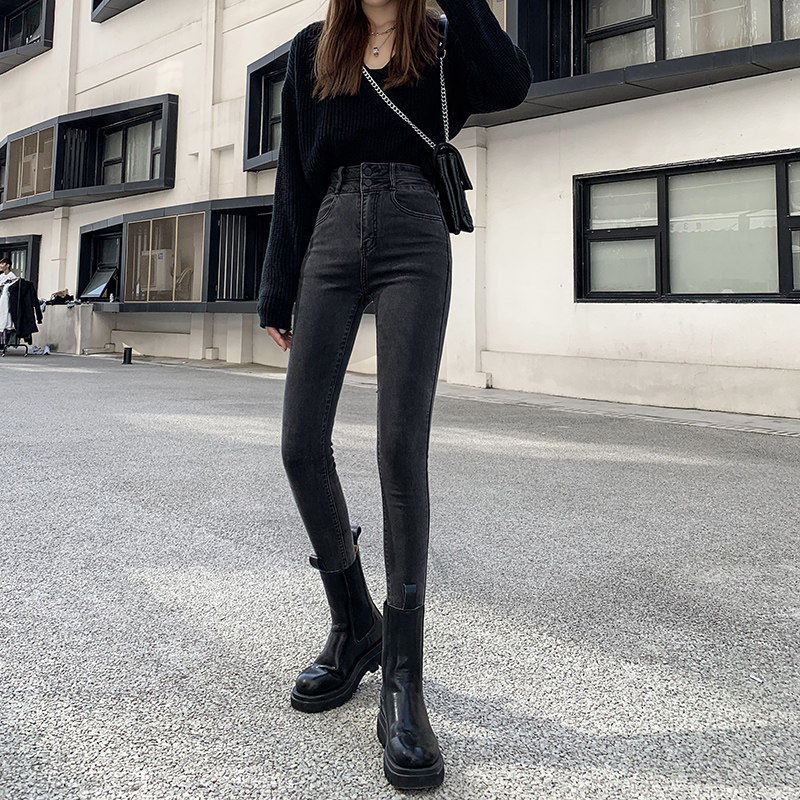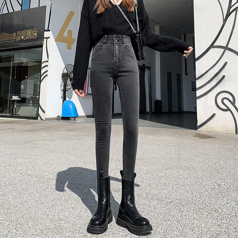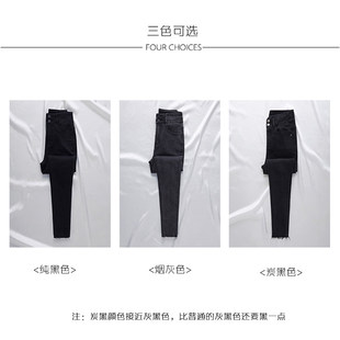 紧身加绒小脚铅笔裤 显瘦烟灰色修身 子 女2025年秋冬新款 高腰牛仔裤