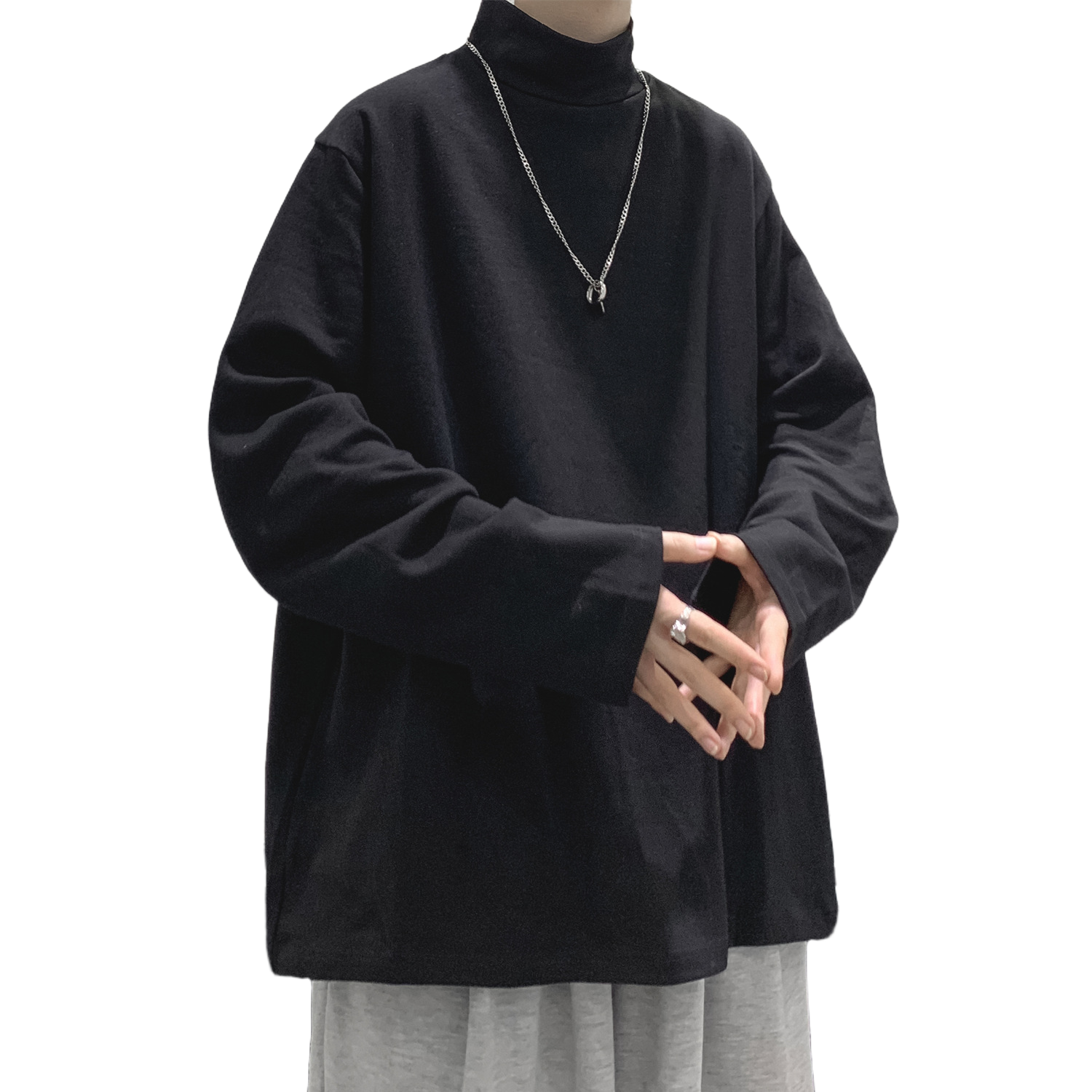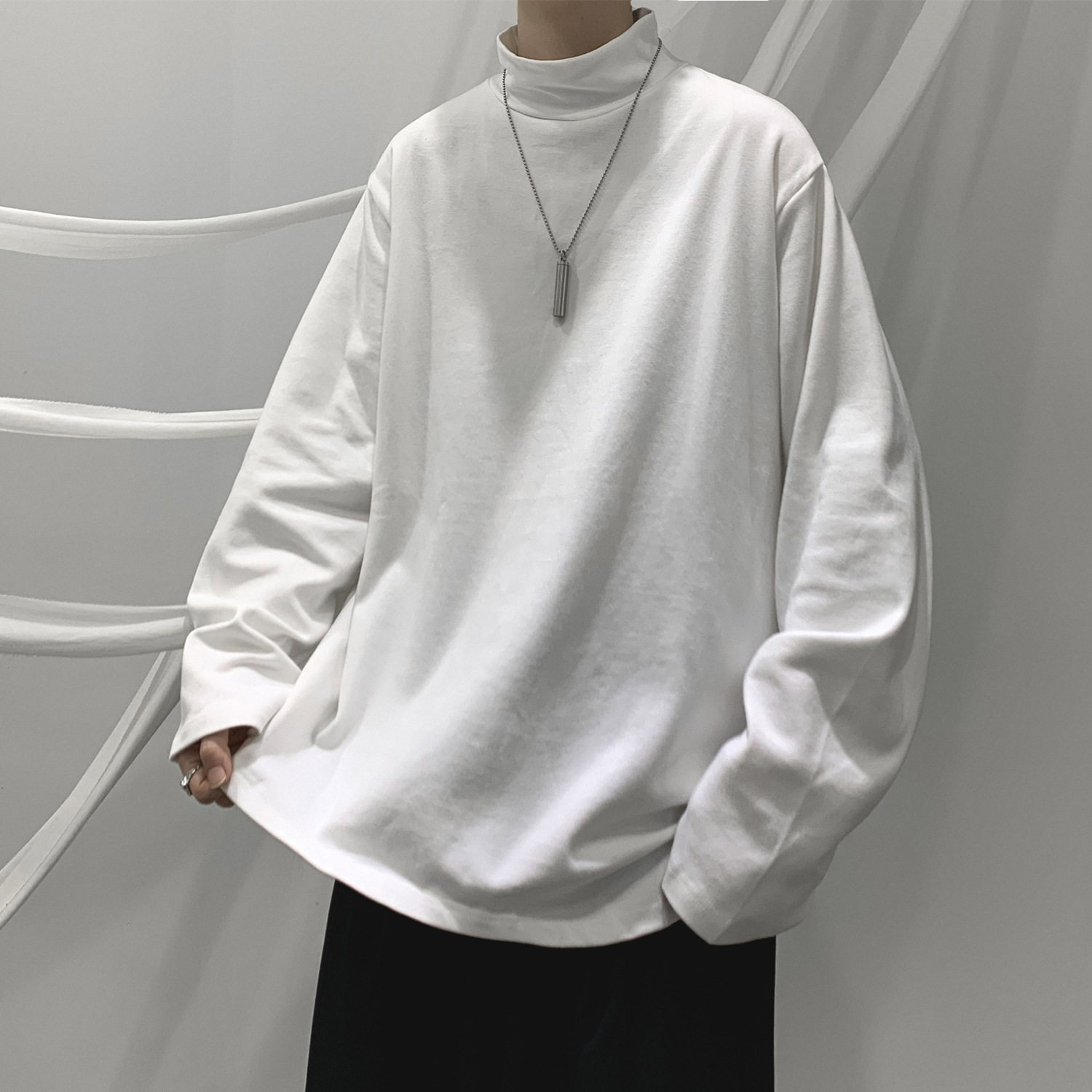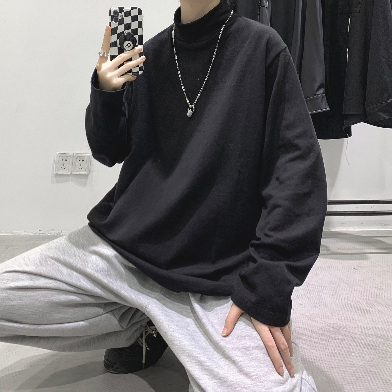 冬季 t恤港风打底衫 ins潮流内搭衣服 宽松百搭长袖 高领卫衣男秋冬款
