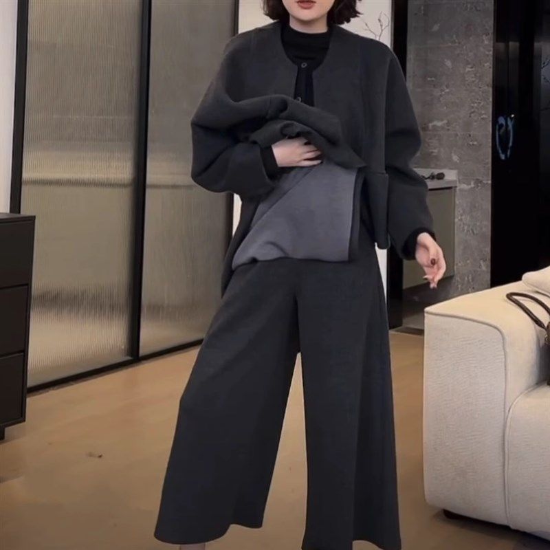 胖妹妹梨型身材遮肉显瘦休闲裙裤 大码 新款 裙女2024冬季 加厚毛呢裤