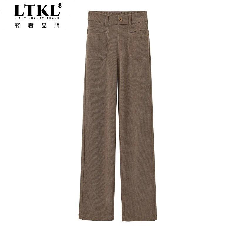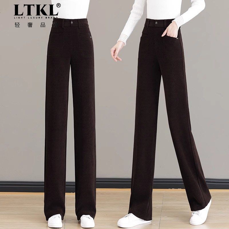 女加绒小个子2024秋冬松紧高腰垂感宽松显瘦休闲阔腿裤 窄版 直筒裤