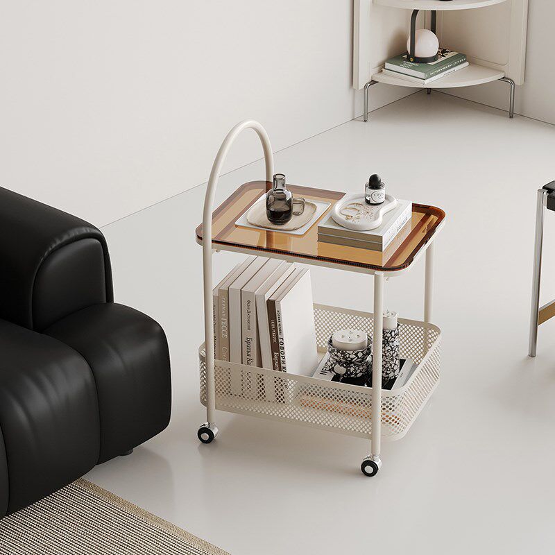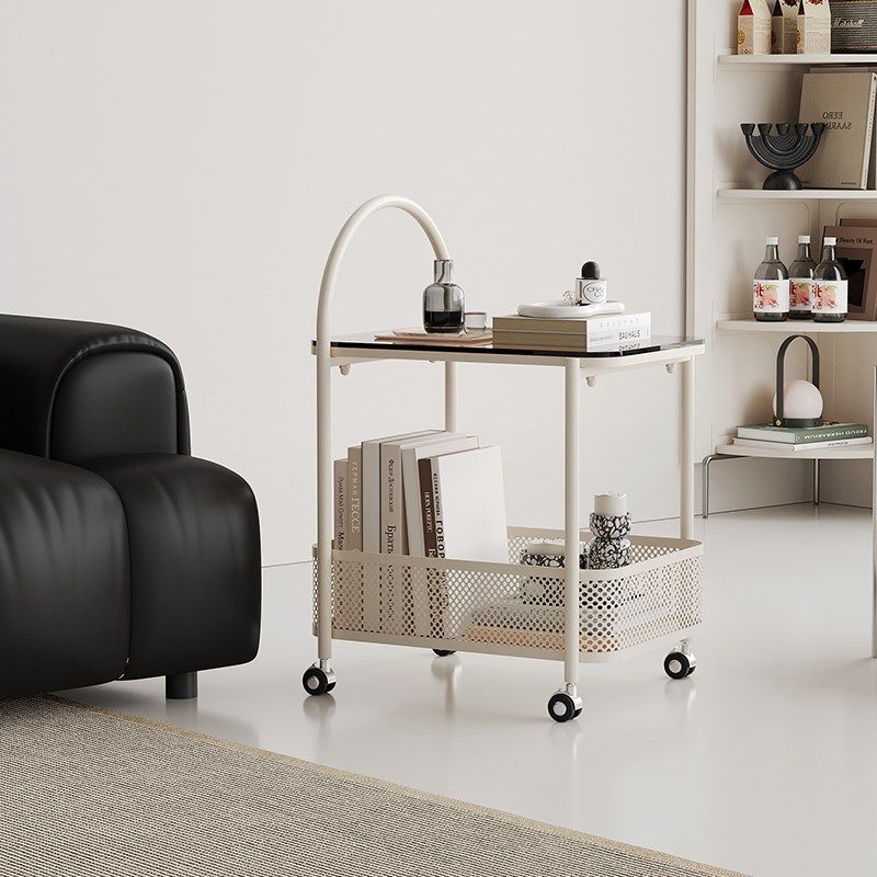 奶油风可移动小户型客厅沙发边几玻璃边桌小茶几卧室床头落地推车