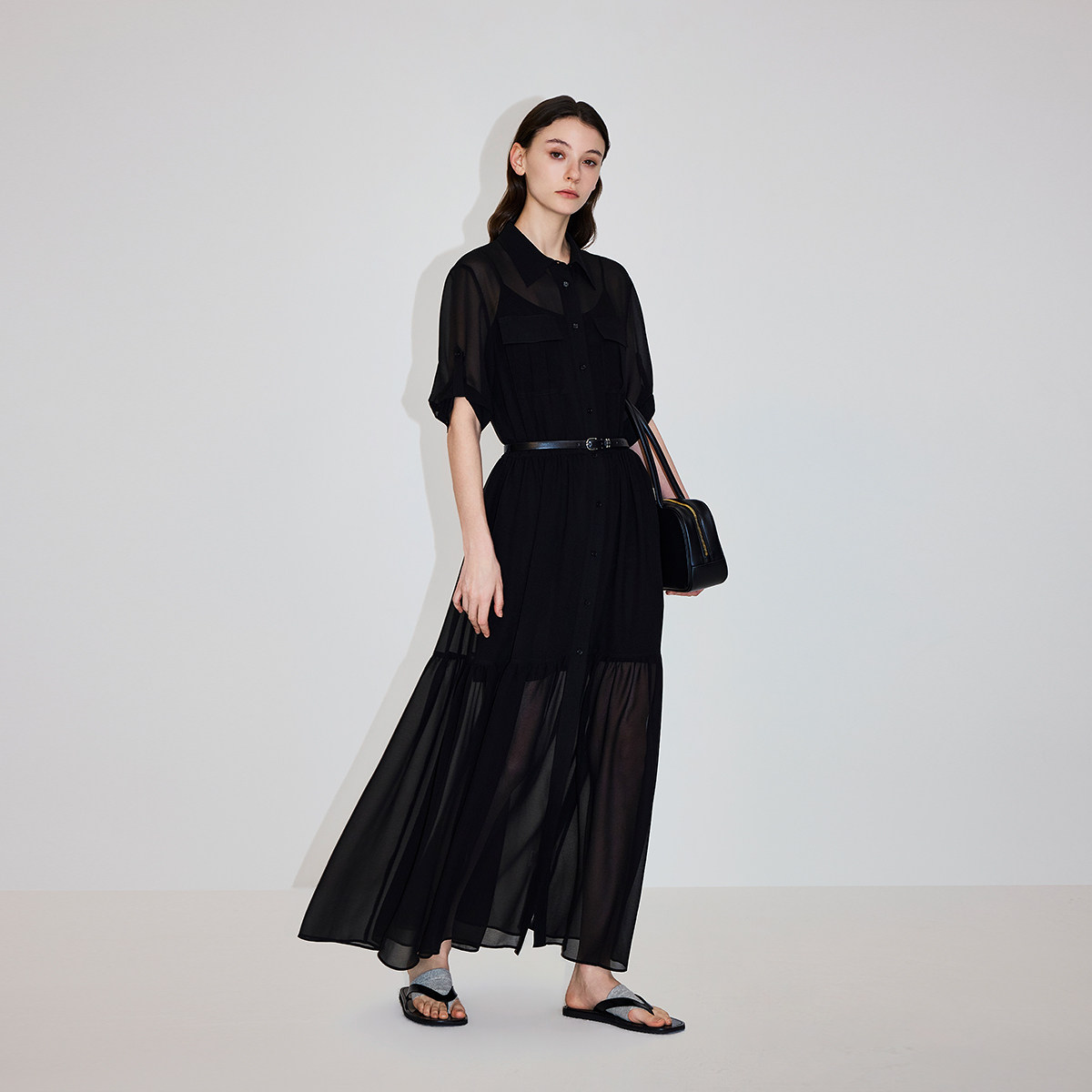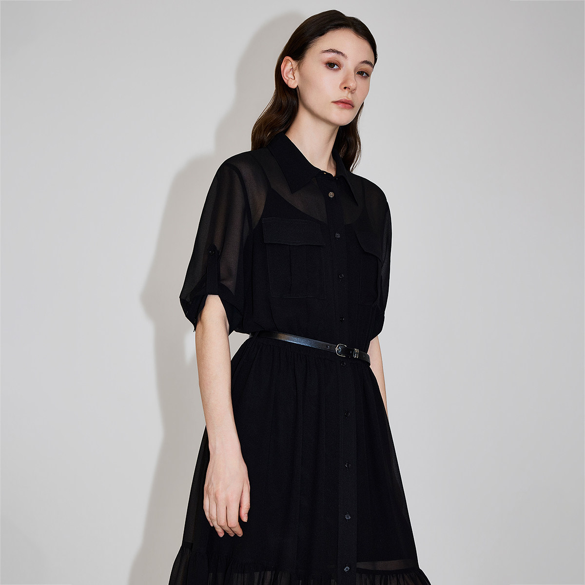 连衣裙26春夏腰带雪纺衬衫 OCHIRLY欧时力 裙两件套配吊带 新品