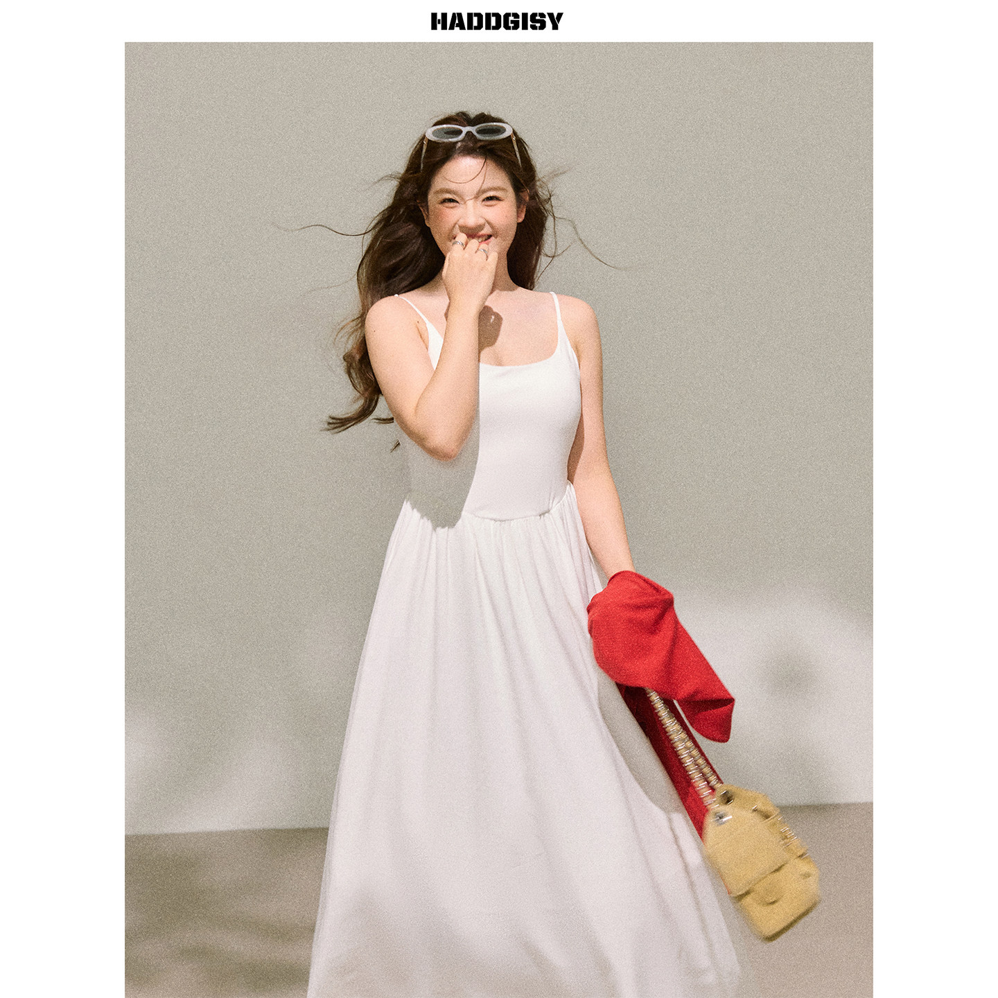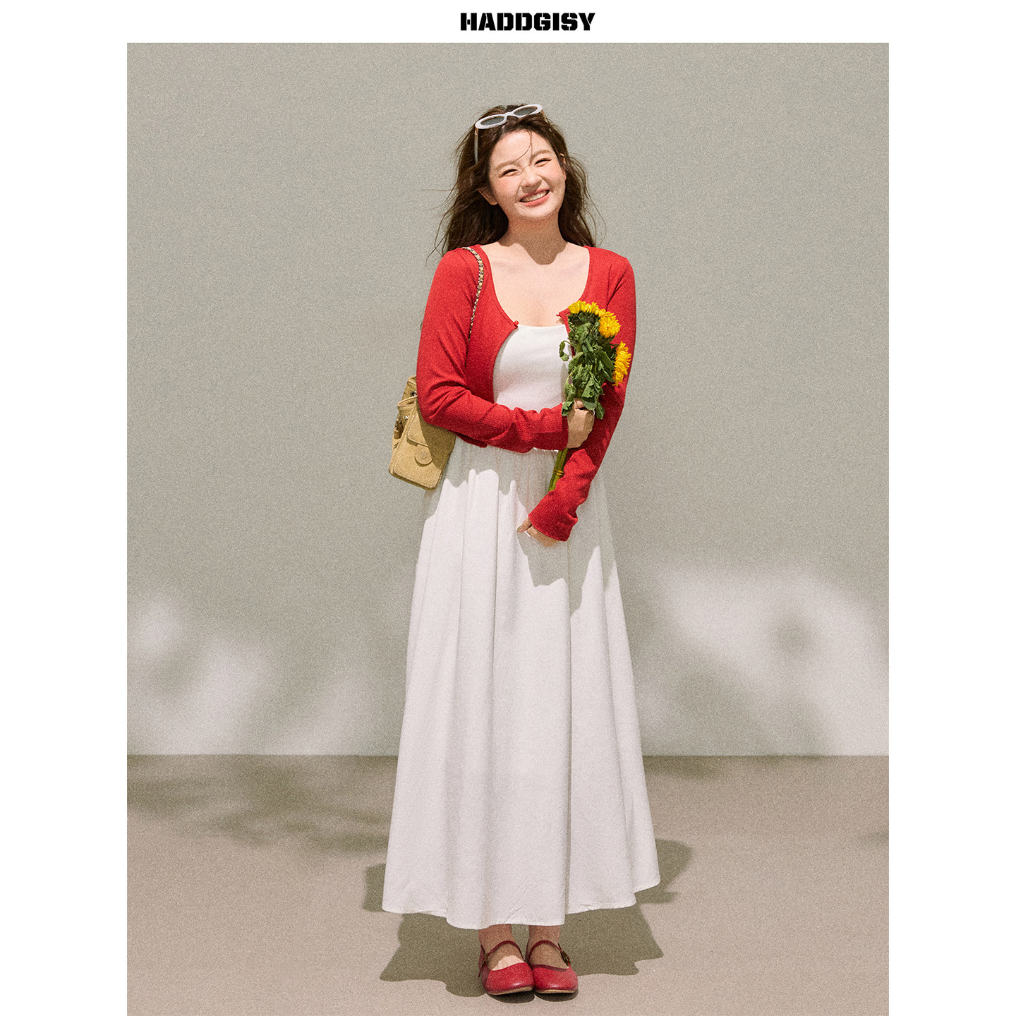 配白色吊带连衣裙胖mm套装 曾小咸大码 红色开衫 佩里月光 春 女装