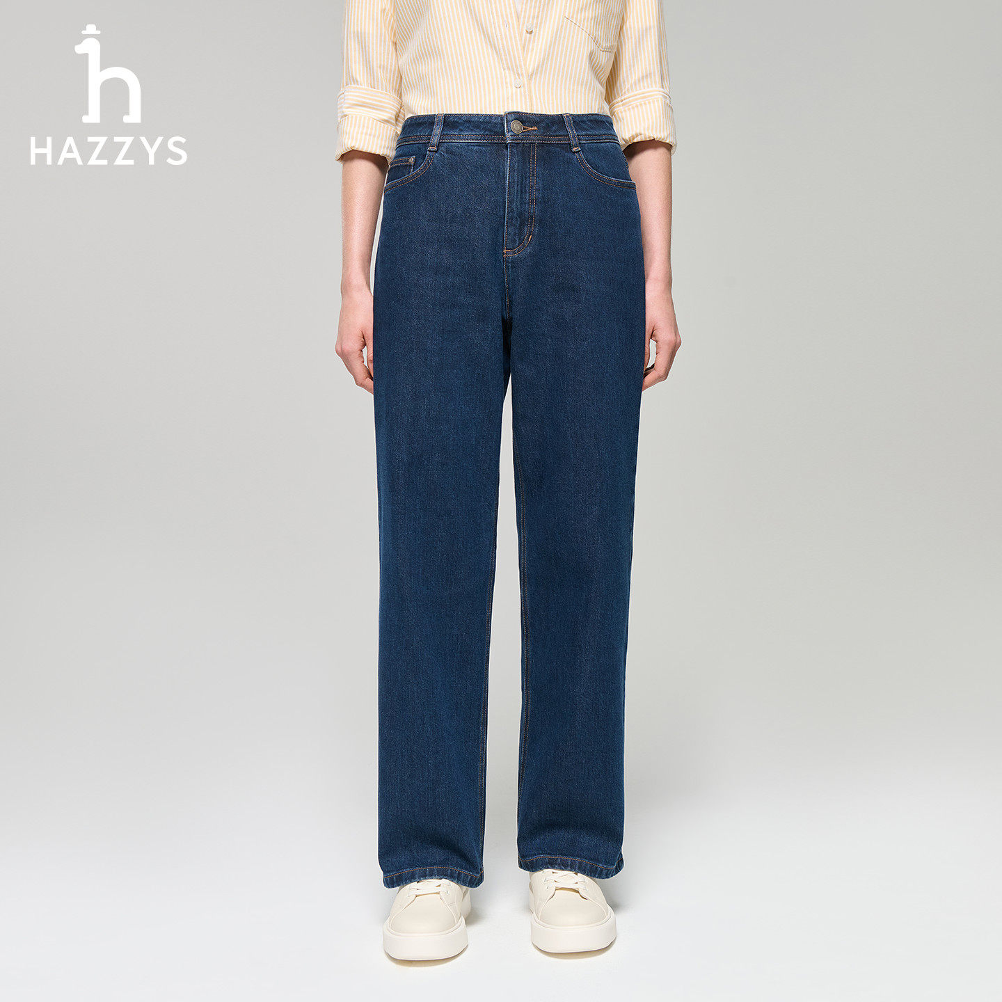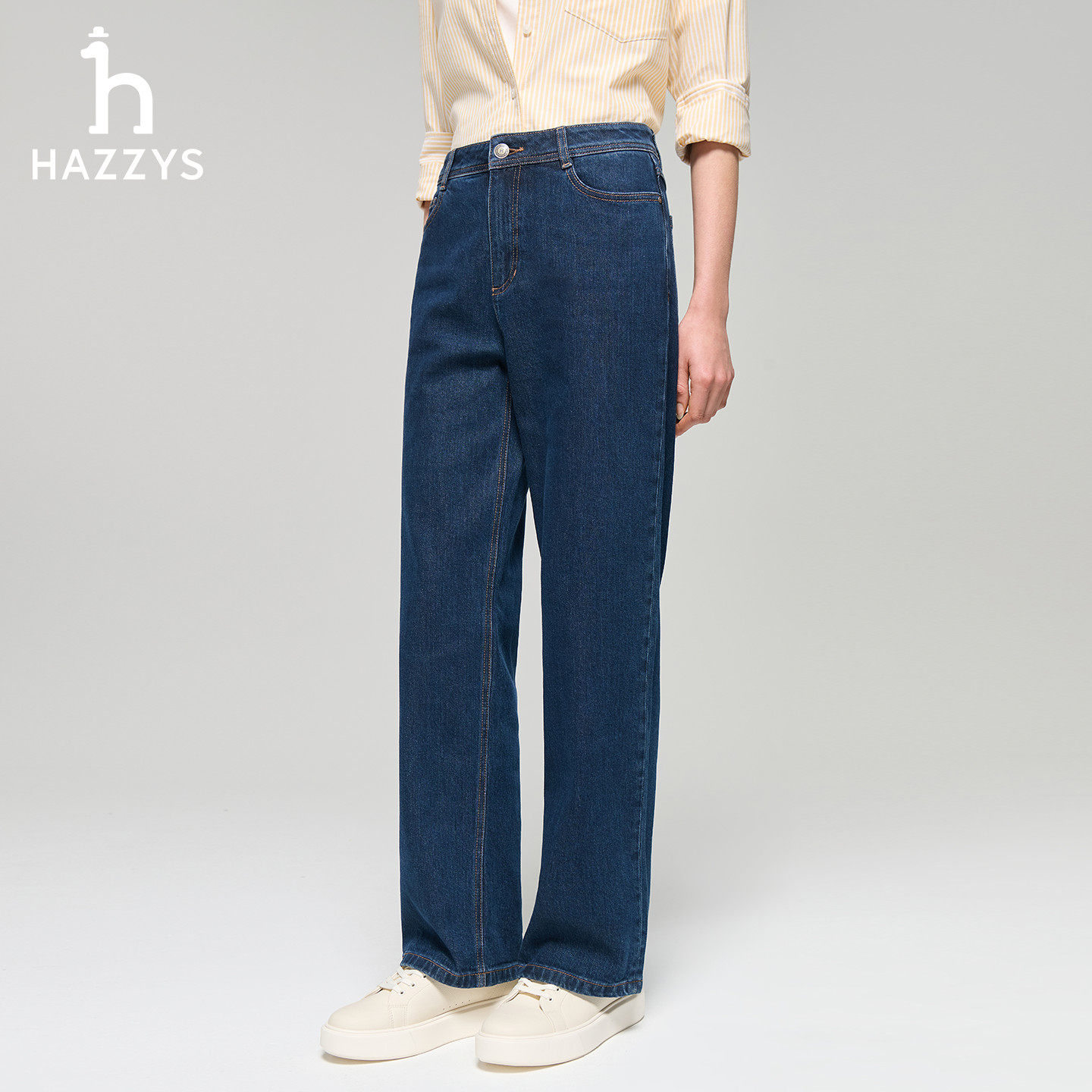 休闲通勤纯色直筒长裤 Hazzys哈吉斯春夏女士牛仔裤 潮 专柜正品