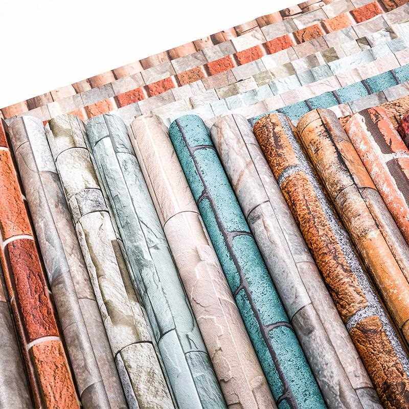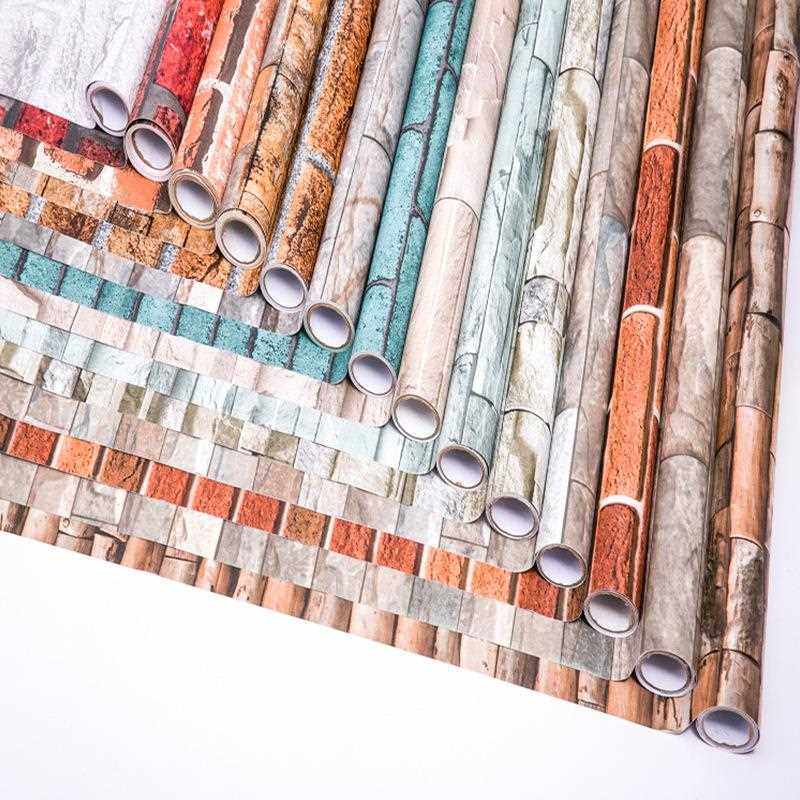 新款 饰壁画背景墙专 直销PVC防水自粘壁纸砖纹卧室农庄墙纸饭店装