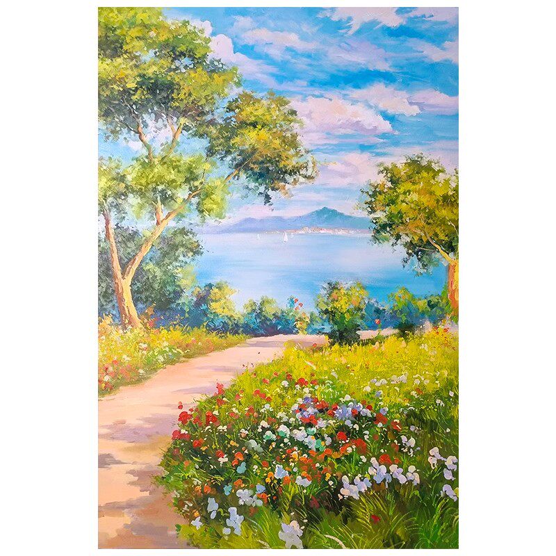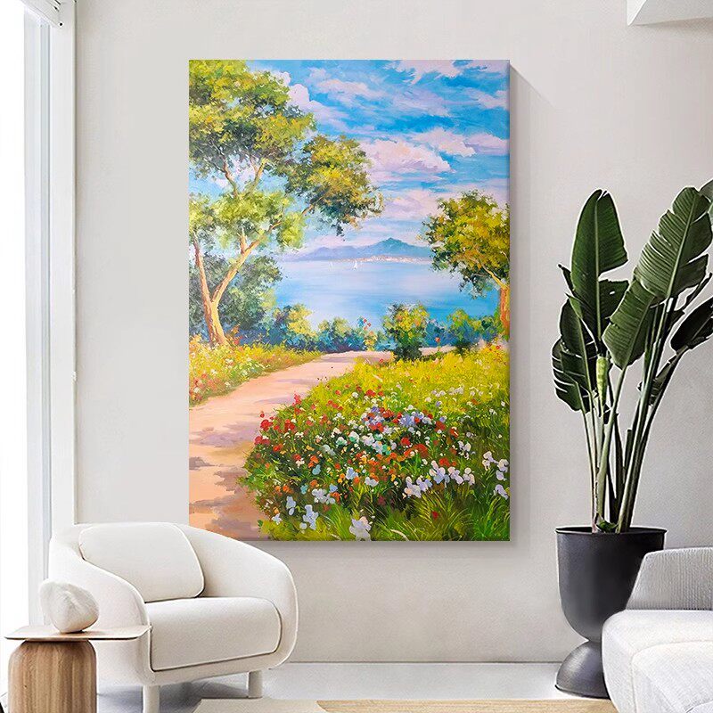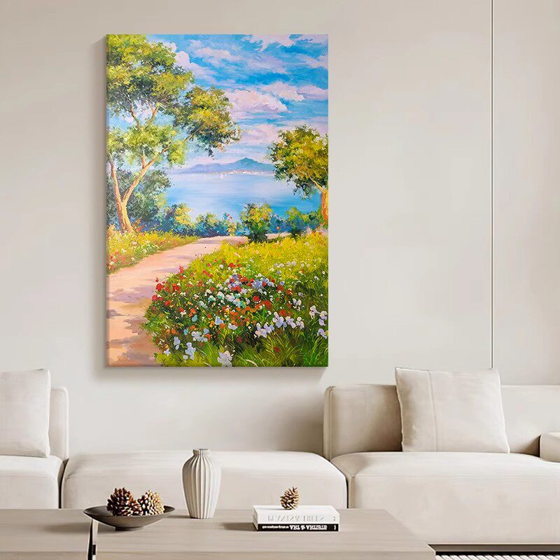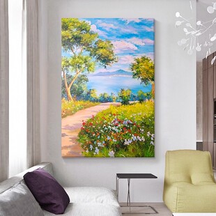 小路风景花卉装 饰画成品仿油画复古田园治愈高级感卧室客厅摆挂画