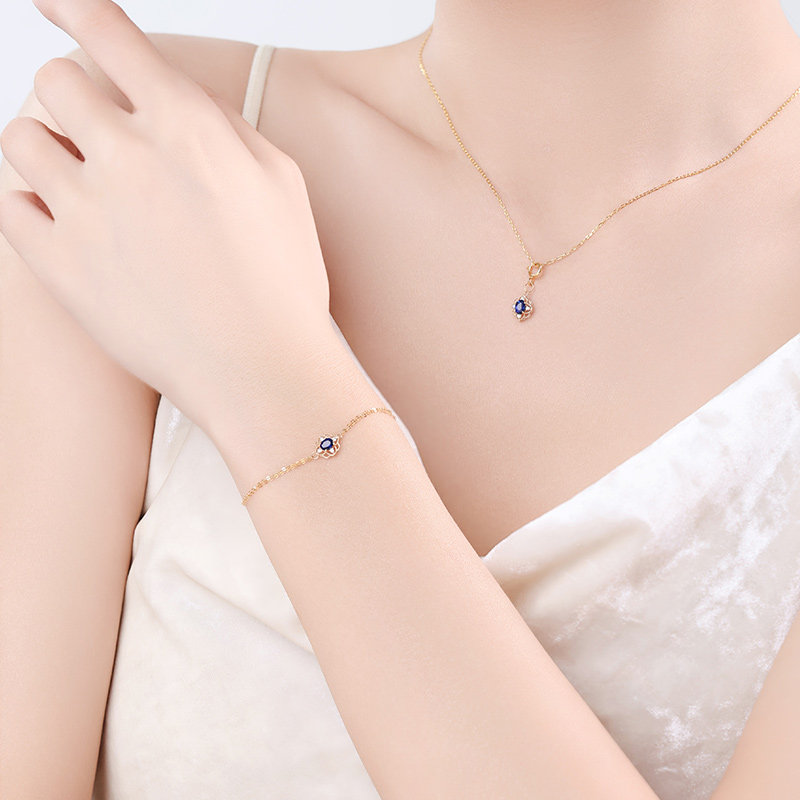 彩宝手饰正品 蓝宝石手链18k金双层镶嵌款 礼物定制 凝眸 可卿珠宝