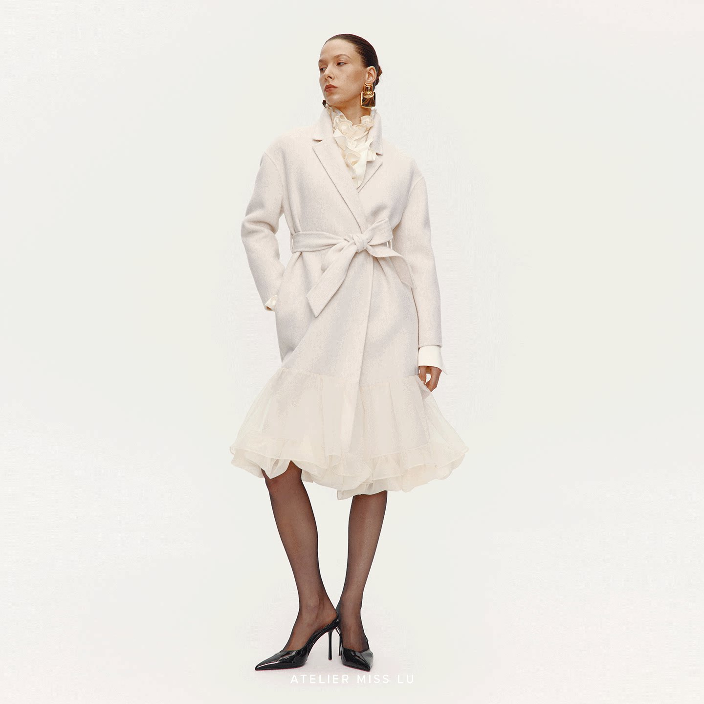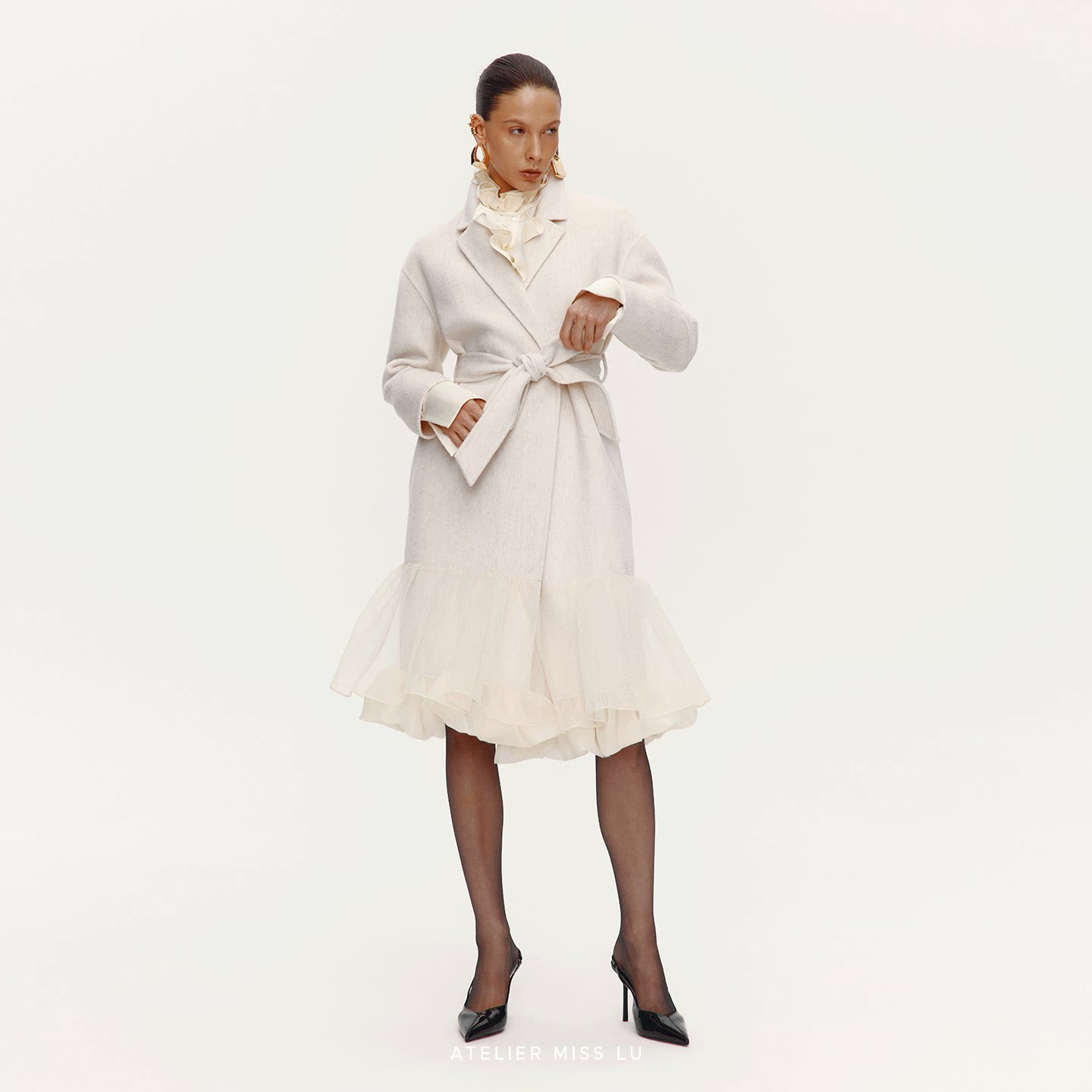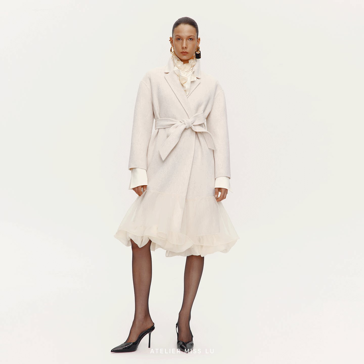 大衣 2025秋冬多层纱下摆绵羊毛长款 AtelierMissLu 雨后睡莲