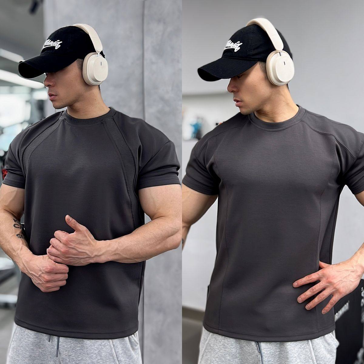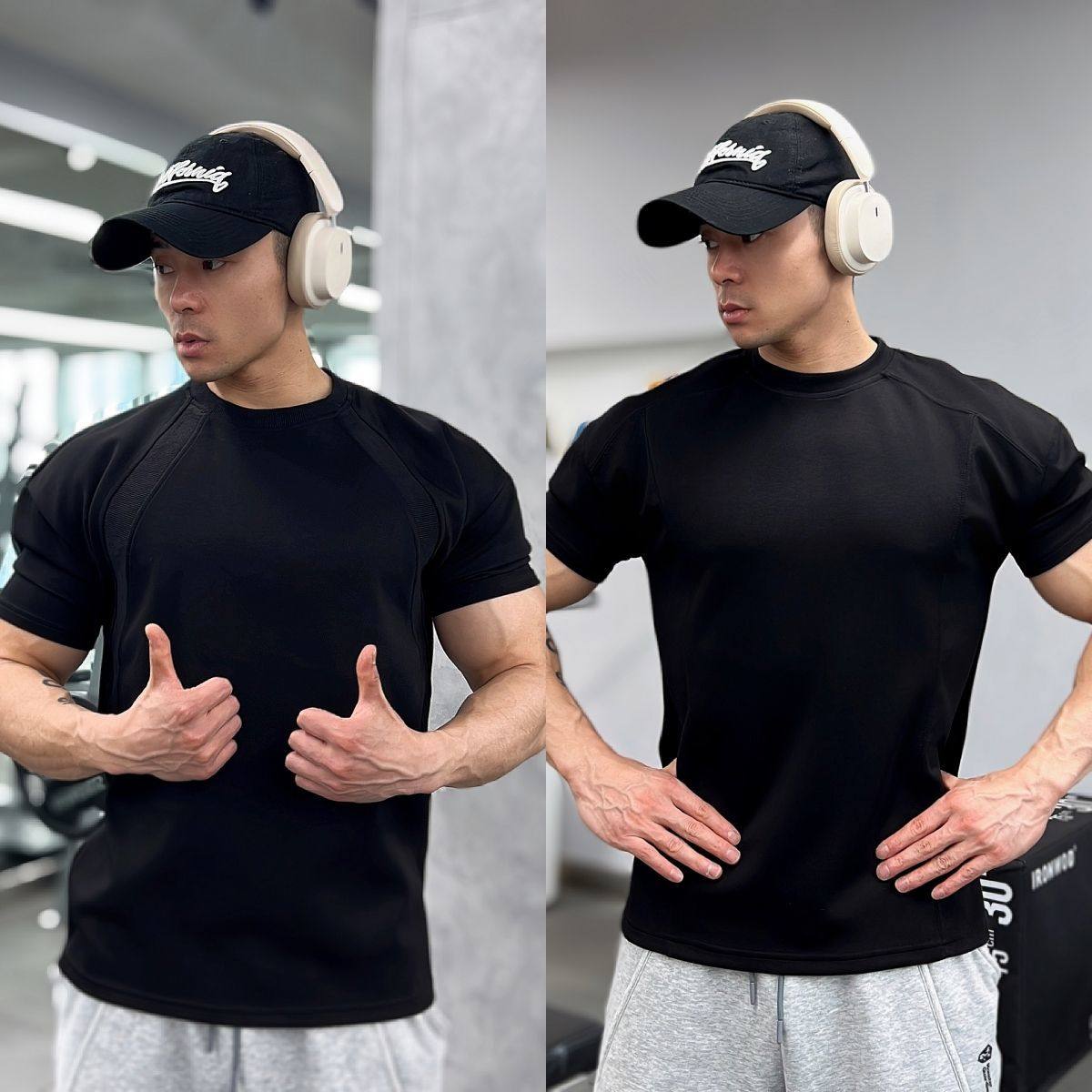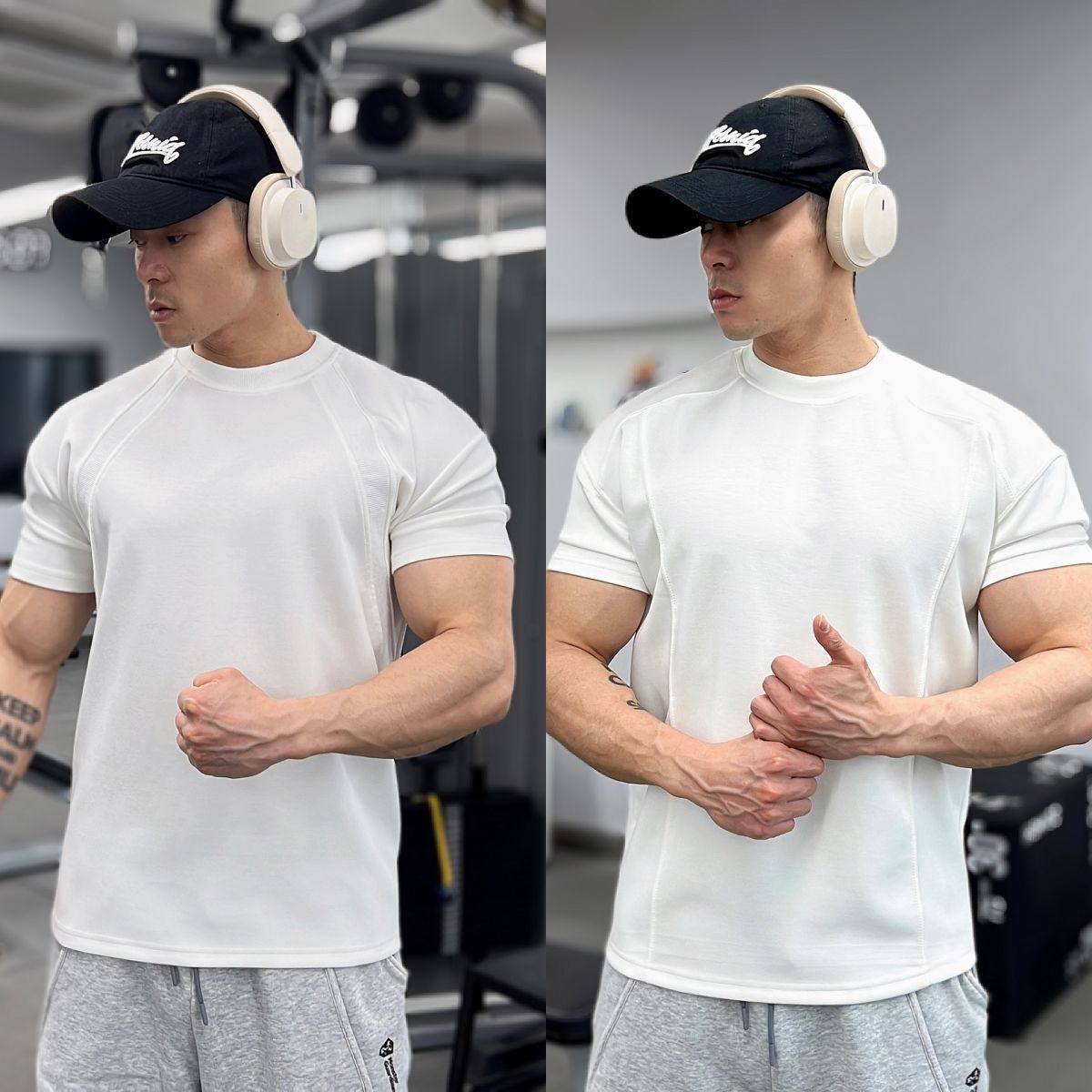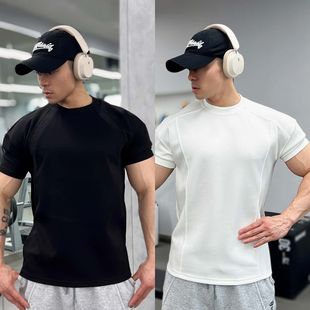 2025春夏运动健身重磅拼接抗皱高弹硬挺显型潮流时尚 T恤 休闲短袖
