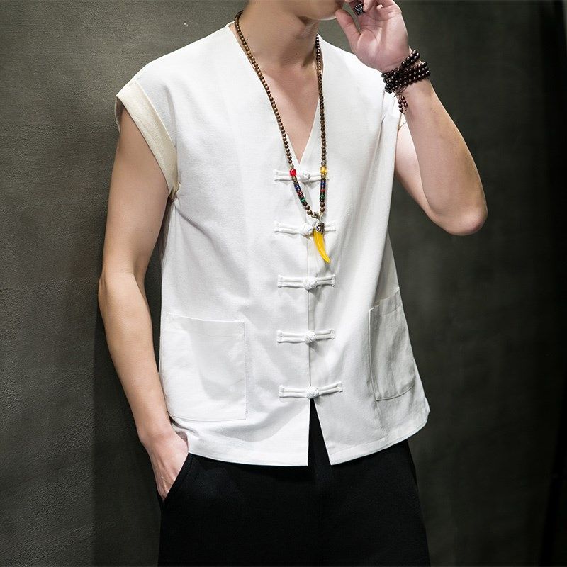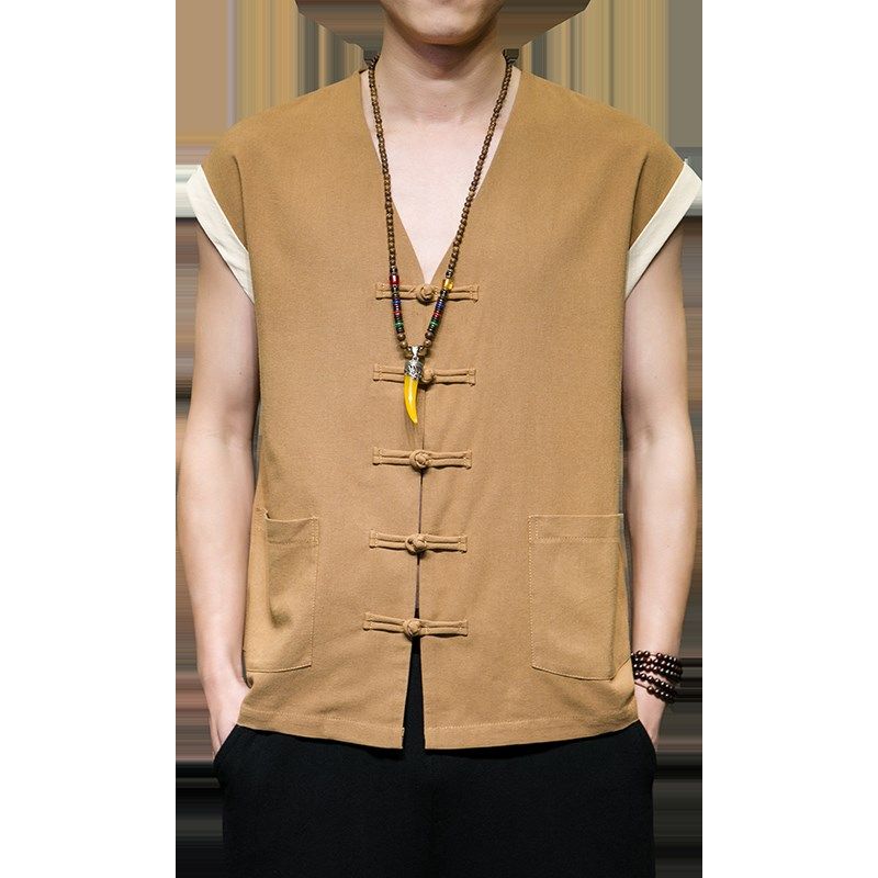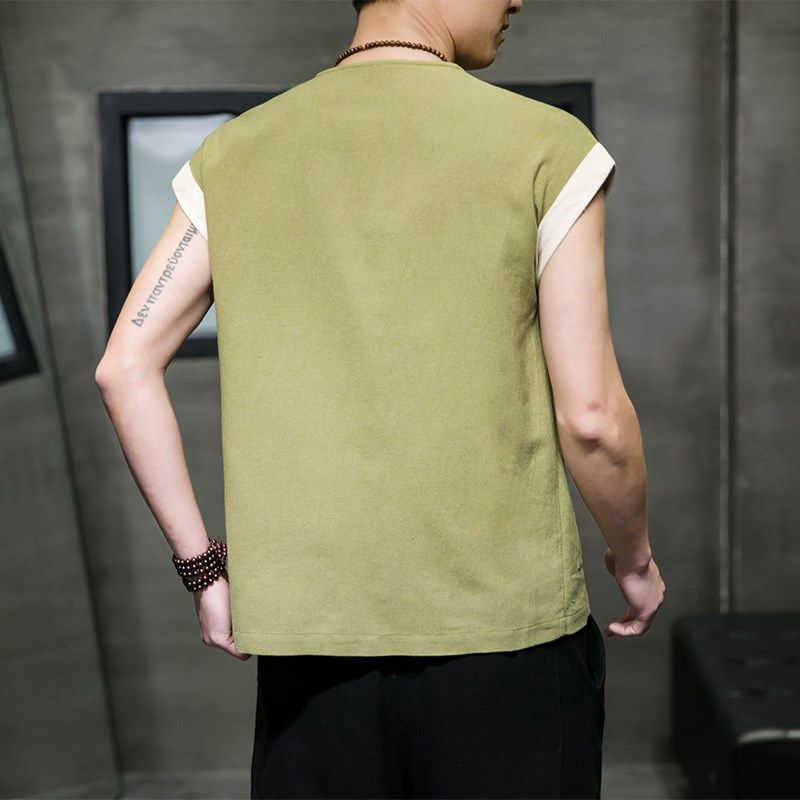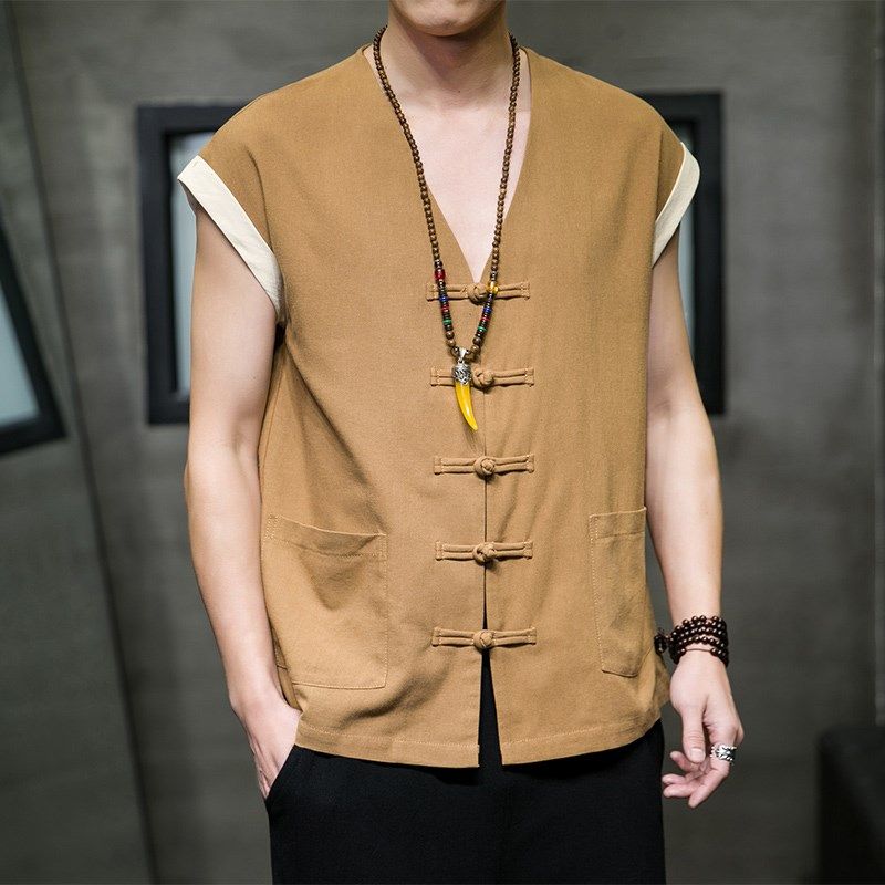 马甲宽松大码 夏季 盘B扣透气无袖 棉麻背心男中国风中式 透气坎 薄款