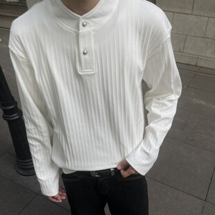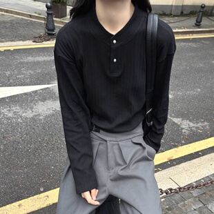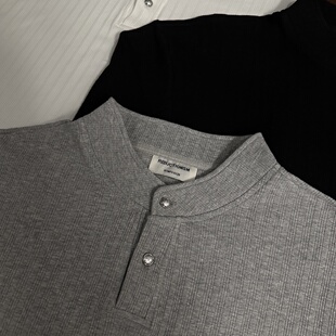 RTIMFD晶石纽扣亨利领基础老钱长袖 型正肩合身打底卫衣秋冬 boxy版