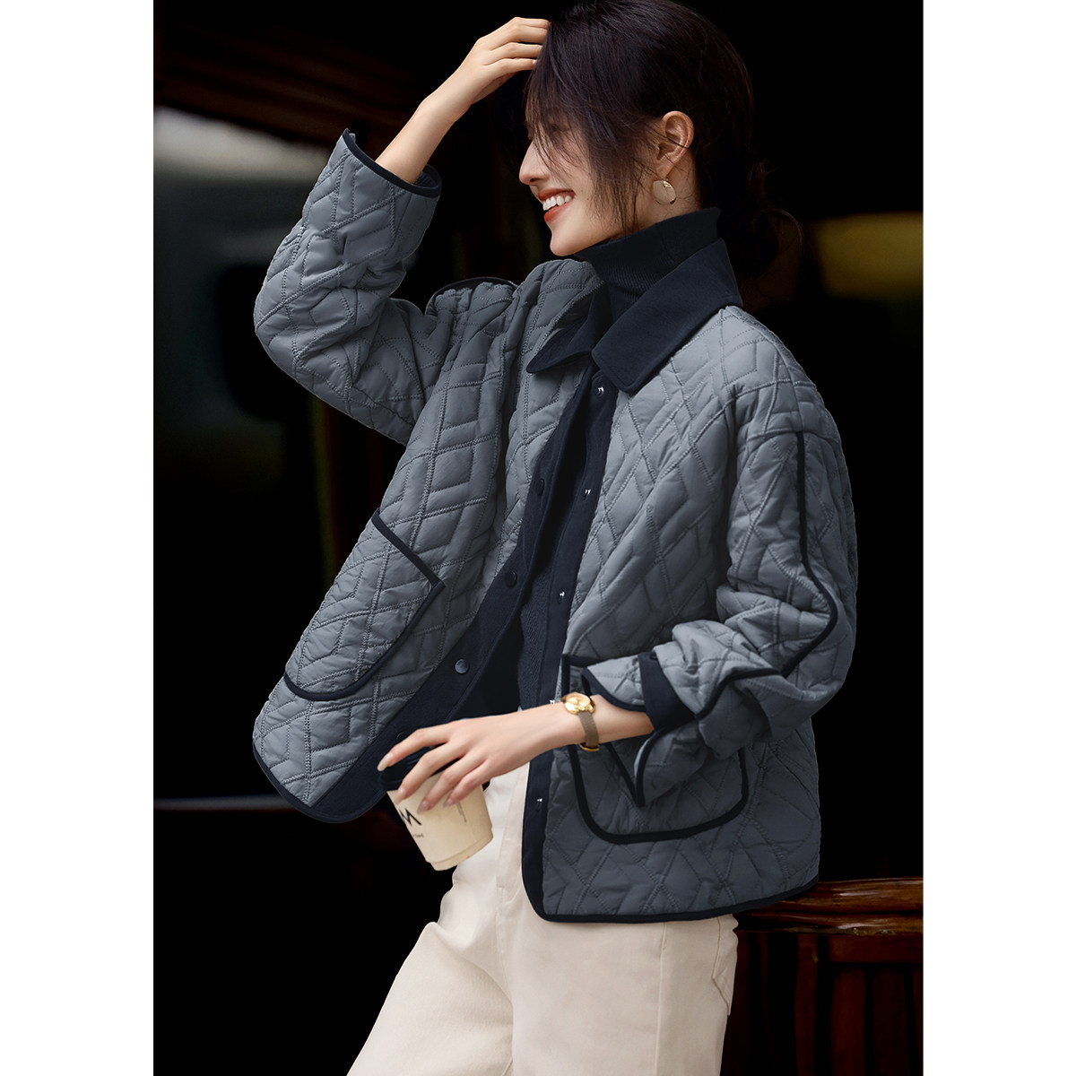 XWI欣未休闲百搭拼色棉服外套女2025年秋冬新款 轻薄保暖棉袄上衣