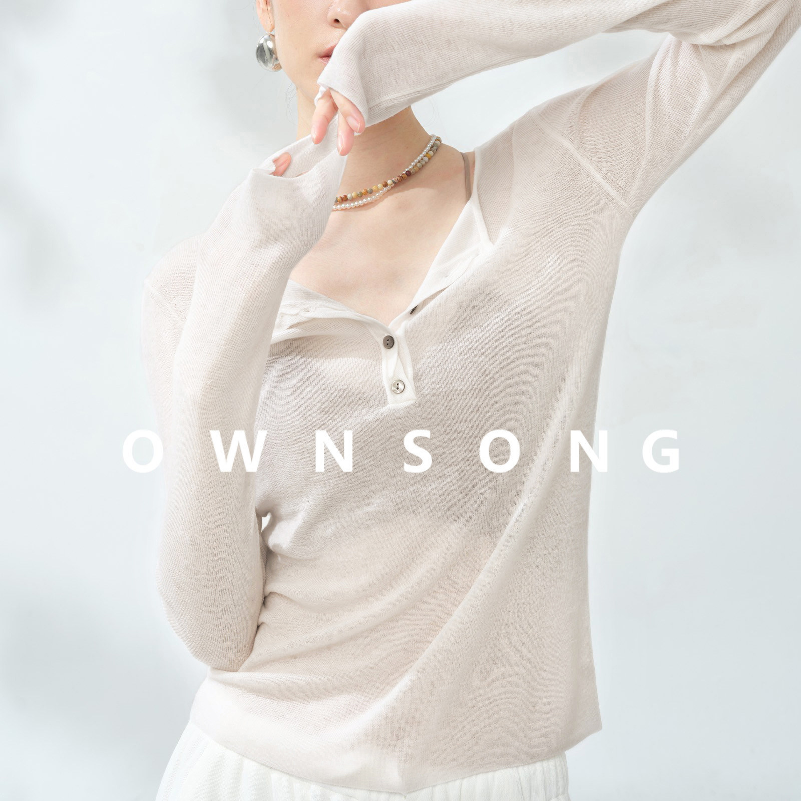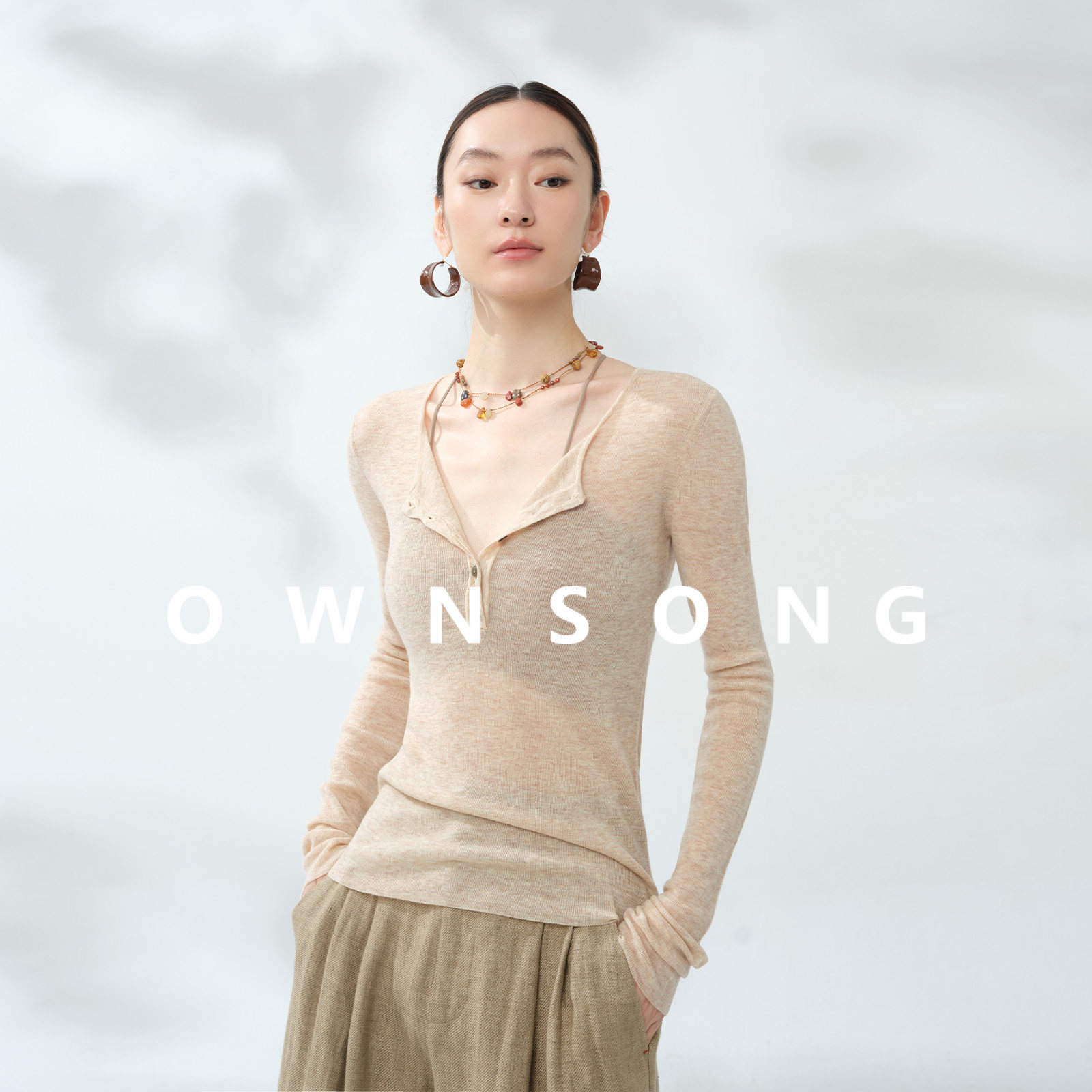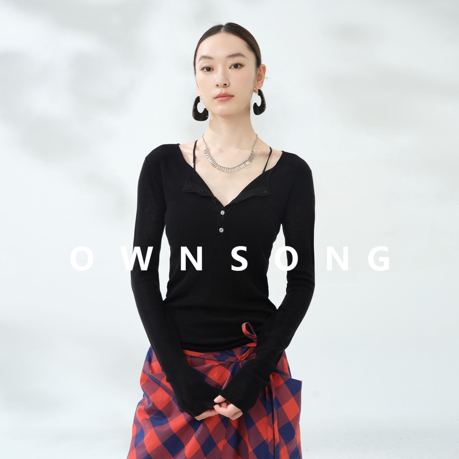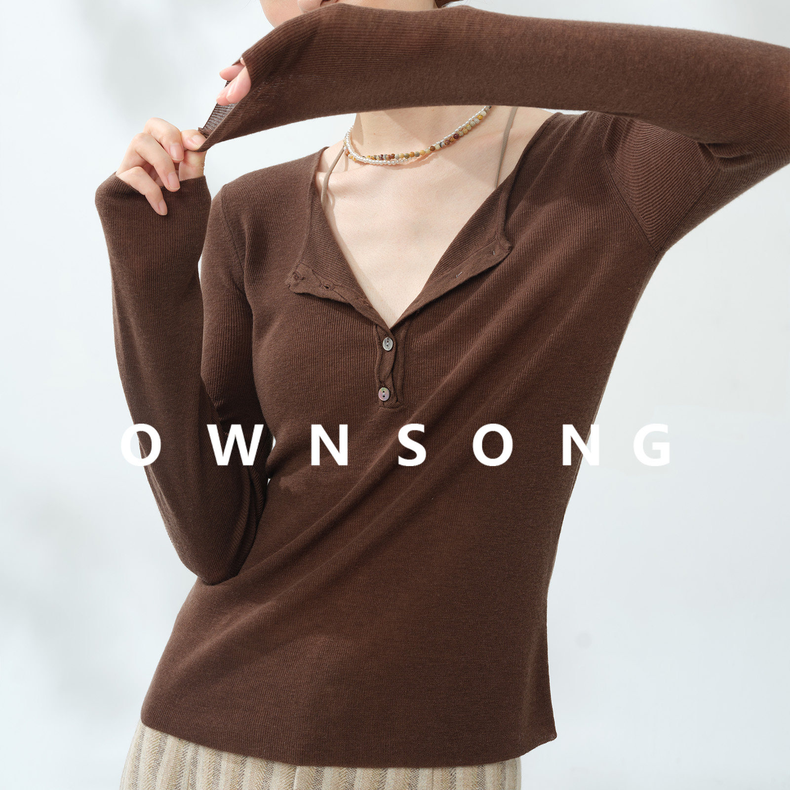 OWNSONG極简亨利领1OO水溶羊毛衫 女内搭打底上衣薄T恤 超柔针织衫