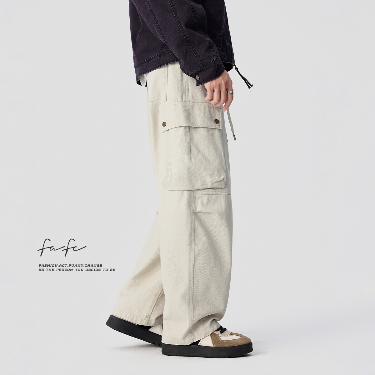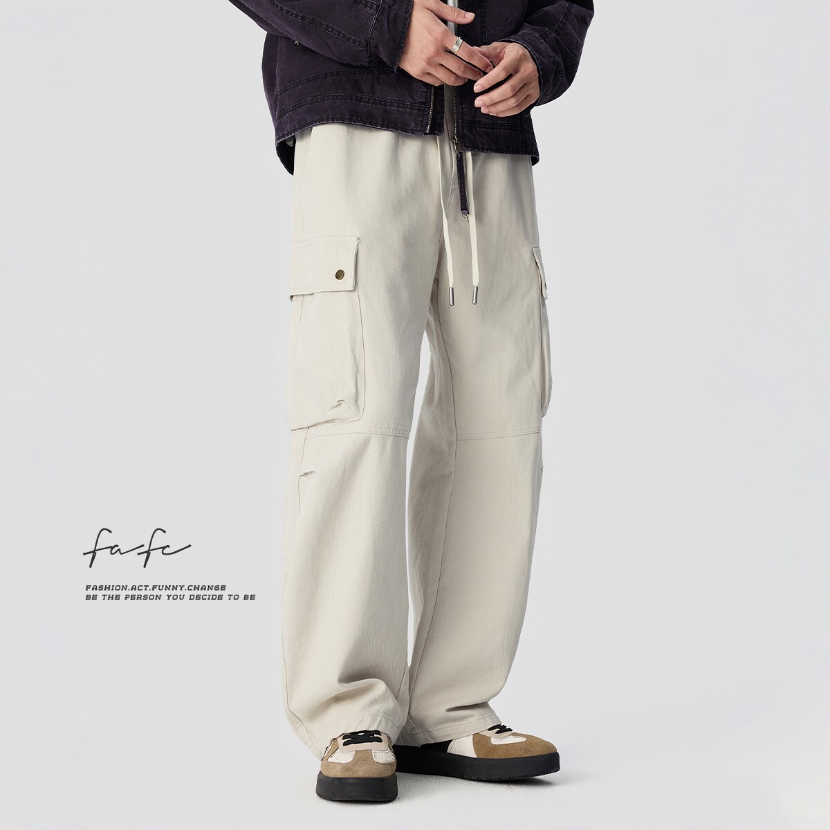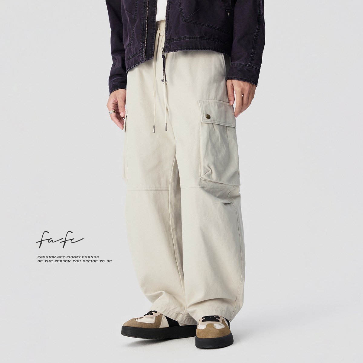 男多口袋宽松直筒阔腿长裤 FAFC秋季 休闲裤 复古设计感纯棉工装 美式