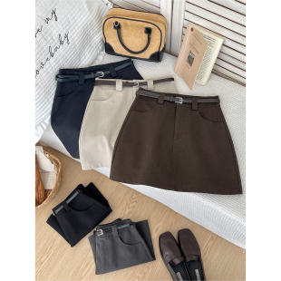 韩国chic咖色天丝洗水棉西装 短裙女春洋气质包臀A字百搭半身裙子