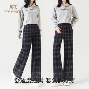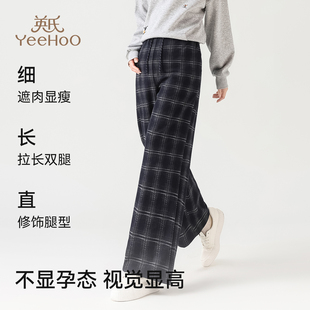 秋冬款 休闲裤 不勒肚子无托腹阔腿裤 全孕期大码 大码 英氏孕妇格子裤