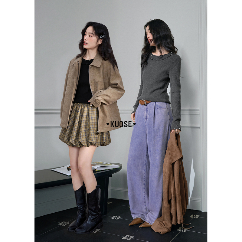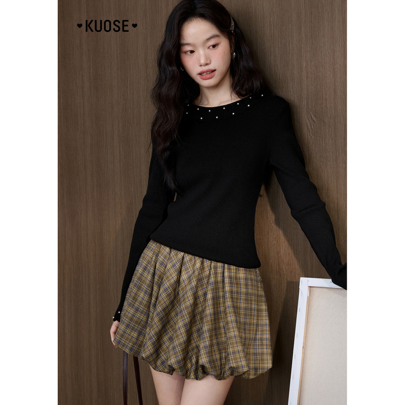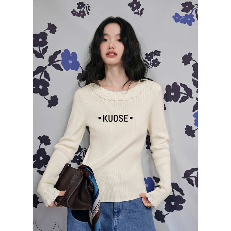 针织衫 洋气2025年秋冬毛衣长袖 宽松 女新款 软糯休闲花边圆领打底衫