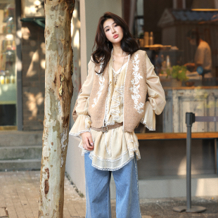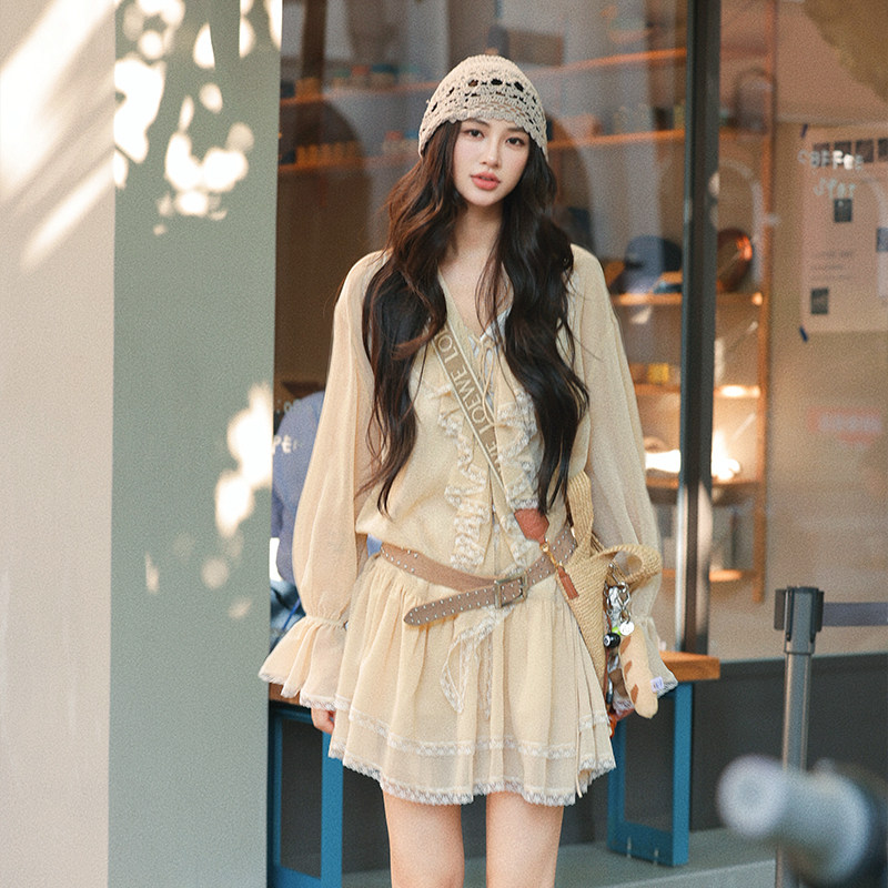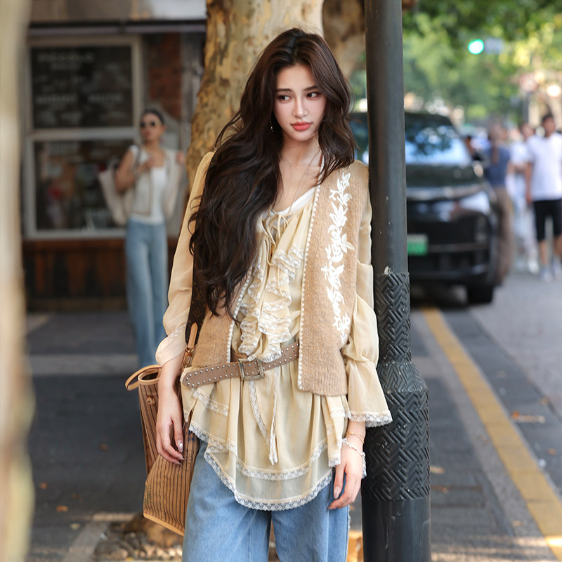 气质甜美通勤法式 衬衫 衬衣秋 裙荷叶长袖 AZure温柔风蕾丝花边衬衫