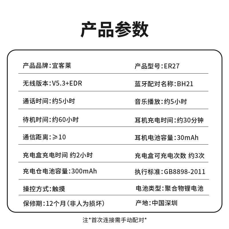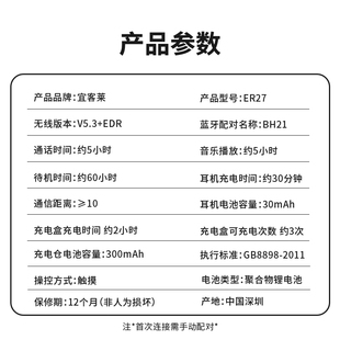 蓝牙耳机 夹耳式 收纳数显充电仓不入耳真无线运动长续航运动跑步健身 ECOLA 宜客莱