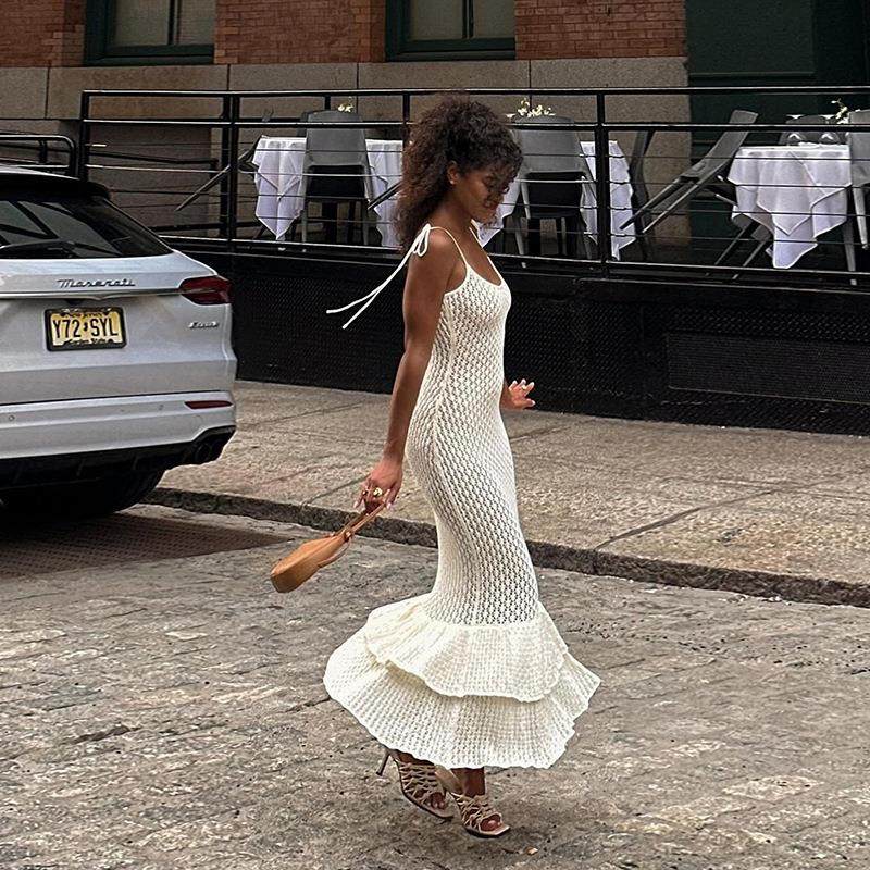 打底性感显瘦背心裙女纯色 韩版 女针织平领吊带裙中长新款 连衣裙装