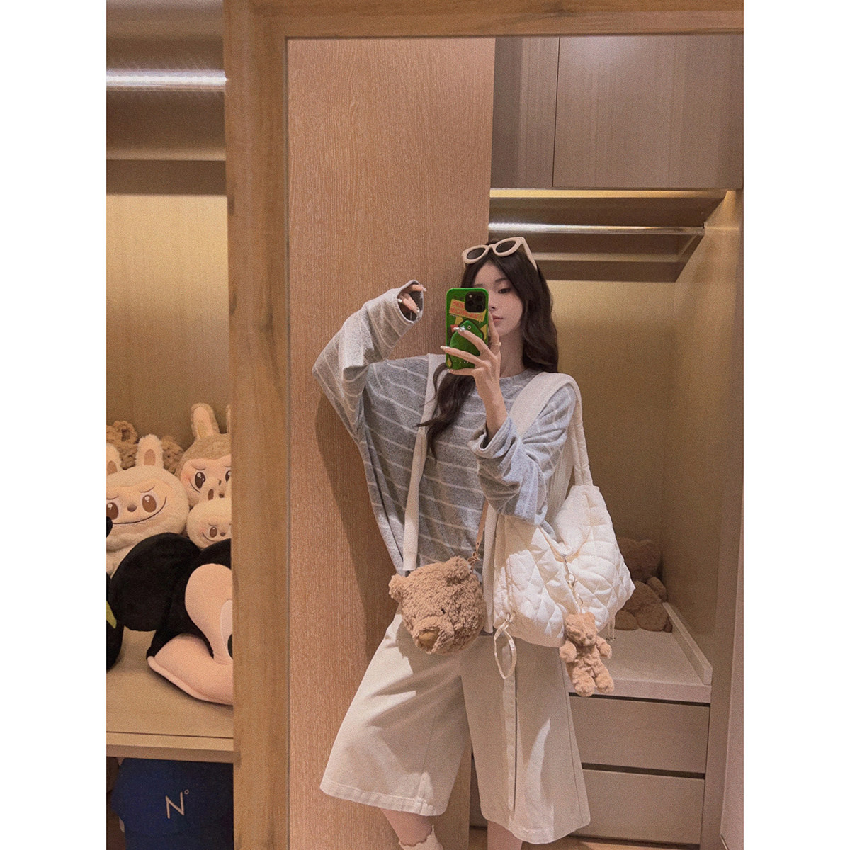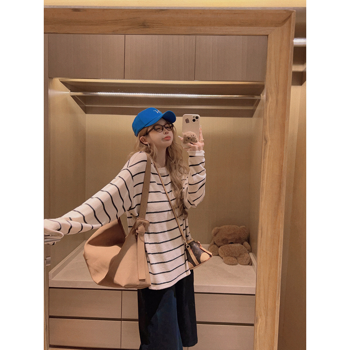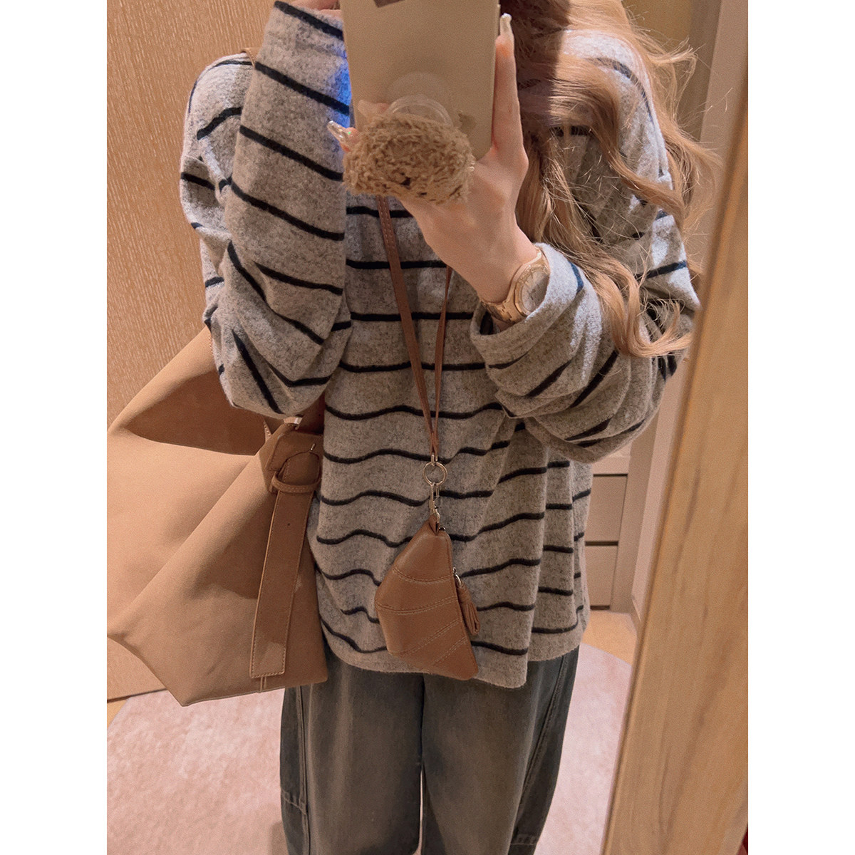 冬 毛绒条纹T恤女秋韩系宽松遮肉加厚内搭打底衫 Yukiss 慵懒风长袖