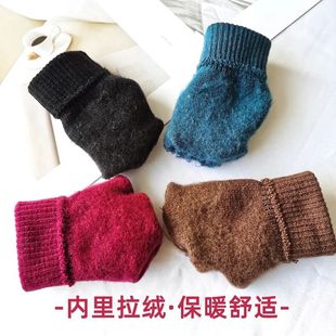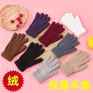 纯色针织手套男女士秋冬季 保暖加绒弹力毛线分指学生骑行防寒手套