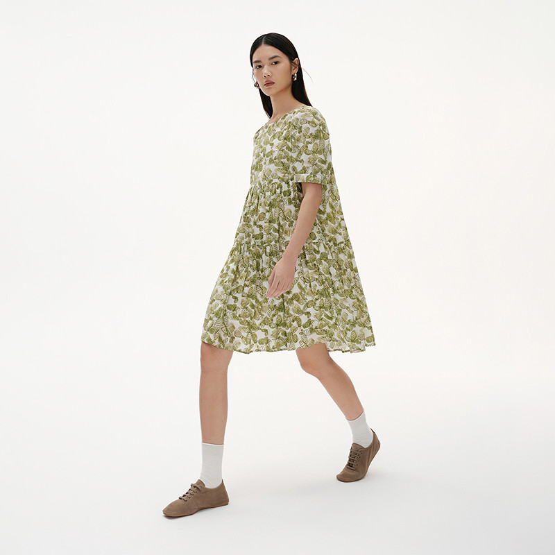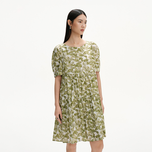 新款 印花连衣裙女25夏季 宽松通勤裙子BDS2LD2628 短袖 播商场同款