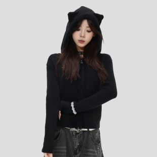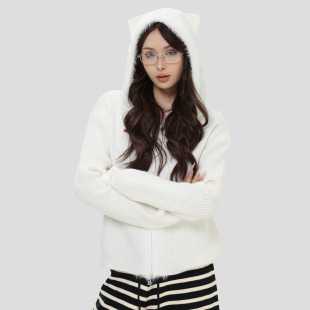 」修身 「小熊耳朵连帽针织开衫 显瘦毛衣女 国潮牌美式 INSstudios