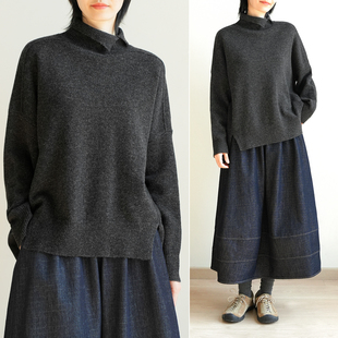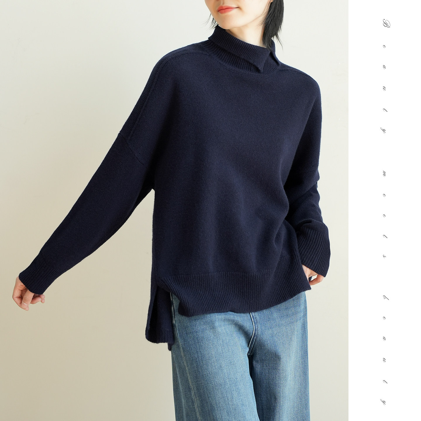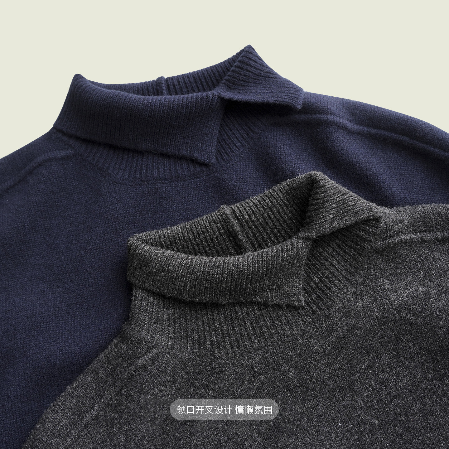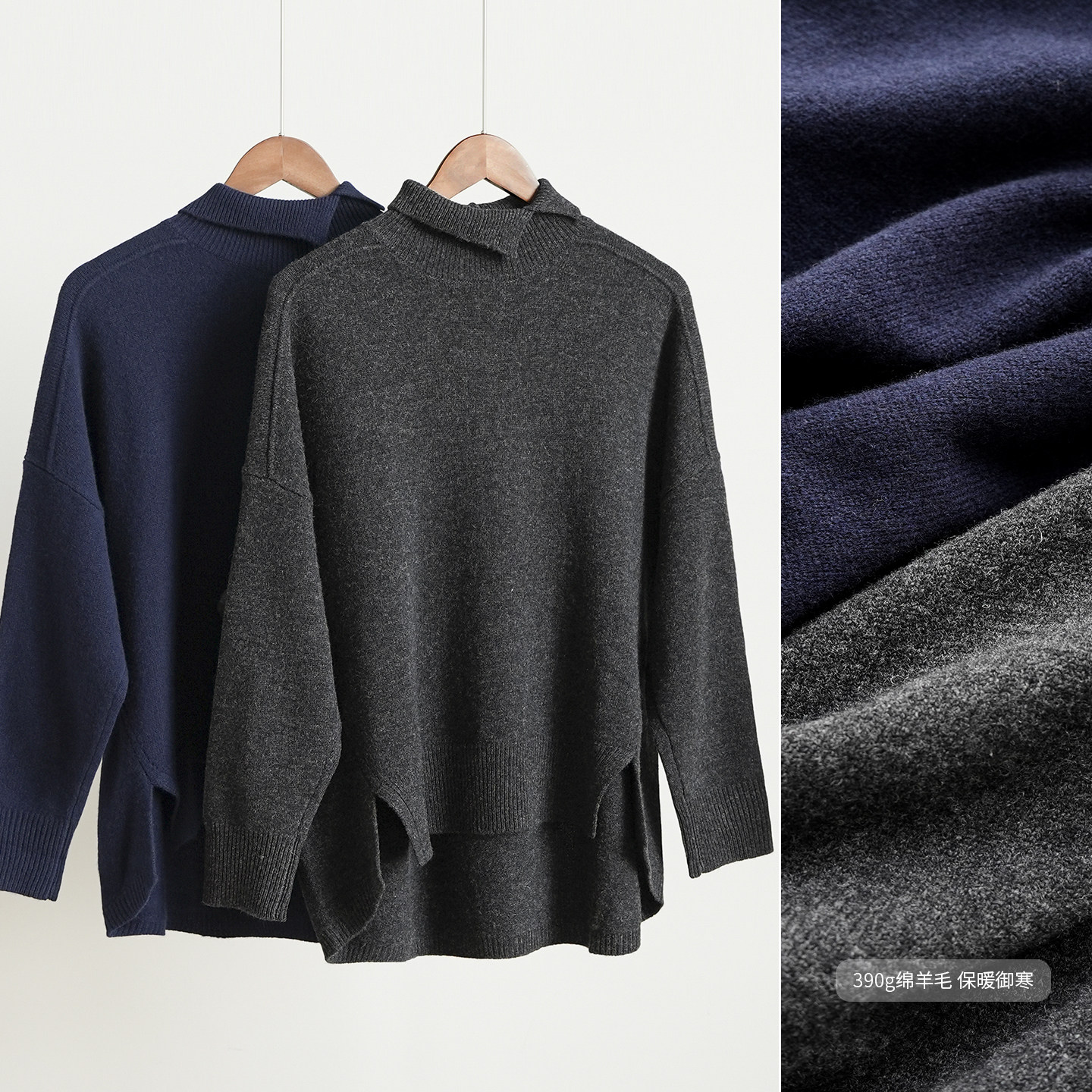 套头针织衫 390g绵羊毛7针保暖半高领毛衣 女士宽松落肩袖