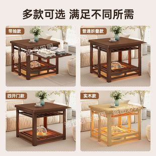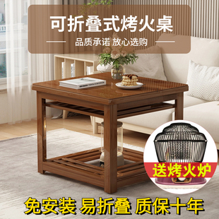 烤火桌子家用新款 取暖茶几实木折叠餐桌炕桌简易 长方形烤火架冬季