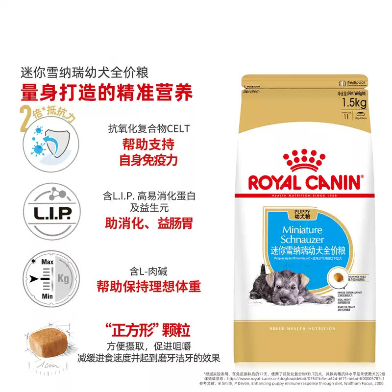 1.5KG 皇家狗粮迷你雪纳瑞幼犬全价粮膨化粮犬主粮SNJ30 自营