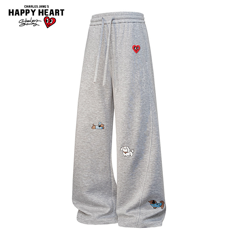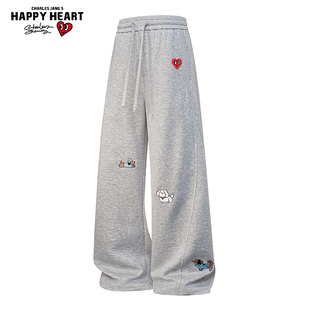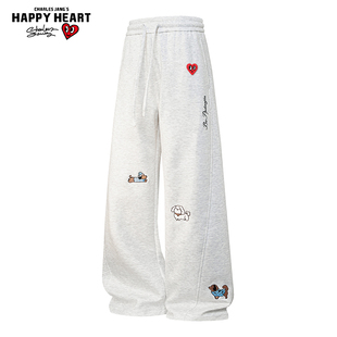 加厚直筒休闲长裤 查尔斯桃心美式 加绒卫裤 子男女秋冬季 小狗弯刀裤
