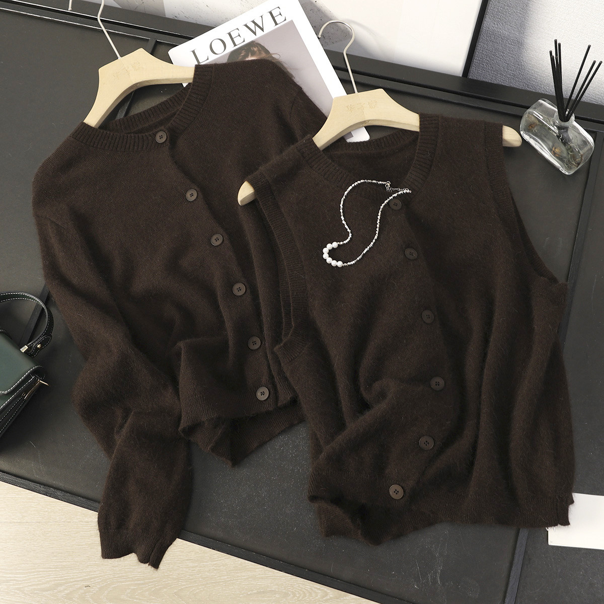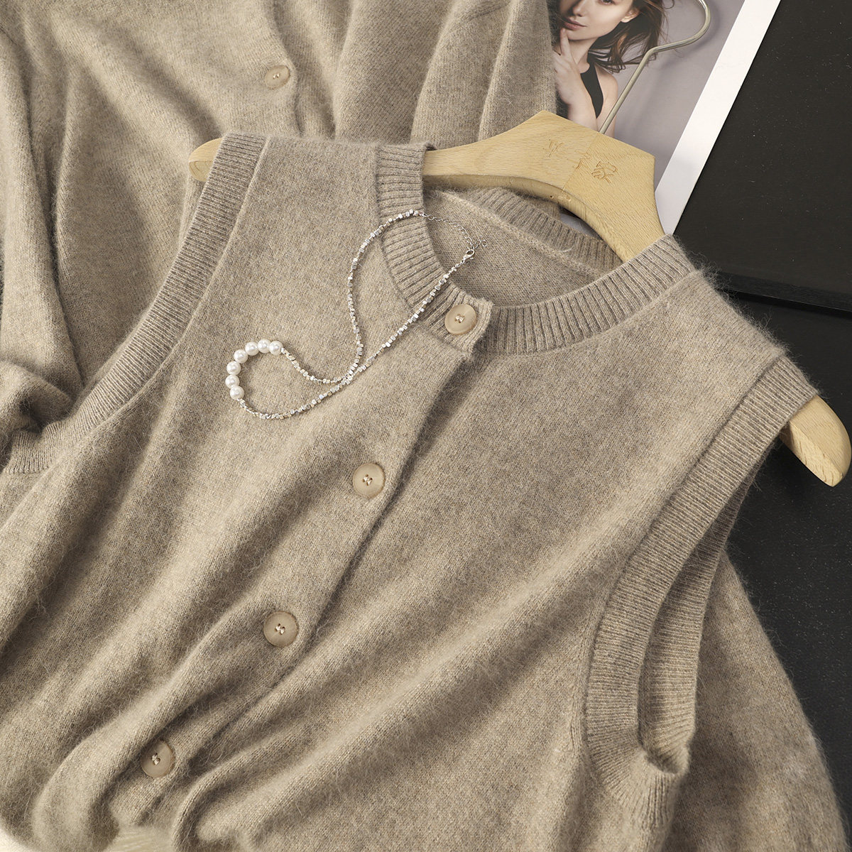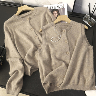 新款 女2025秋季 44785 兔毛绵羊毛混纺圆领针织马甲背心开衫 华子家